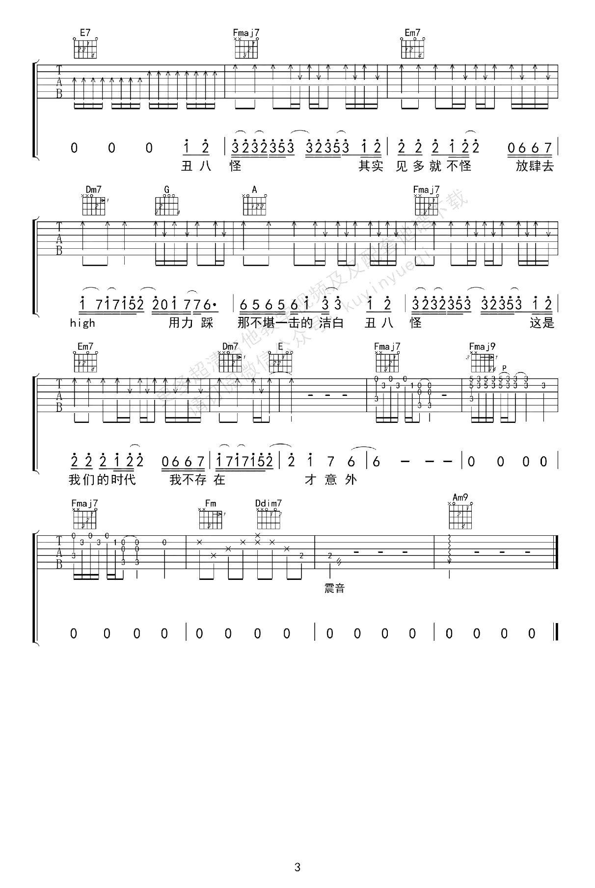 《薛之谦《丑八怪吉他谱》(C调)》内容来自于互联网,不能保证内容的准确性与完整性,仅供学习交流欣赏,请勿用于其它用途,内容版权归原作者及来源网站所有,如有侵犯到您的权益请来信告知,我们将及时删除。