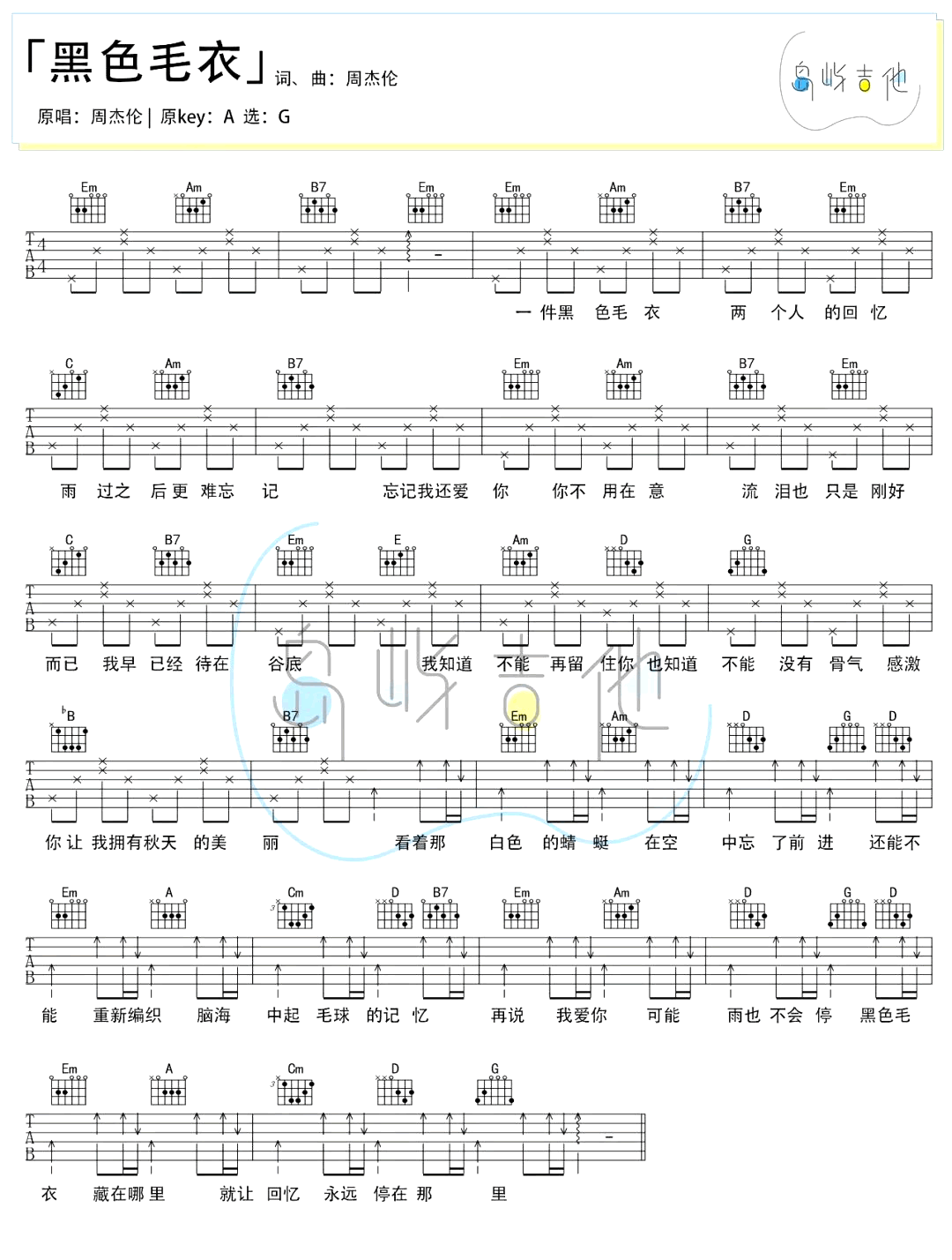 《尼克《黑色毛衣吉他谱》(G调)》内容来自于互联网,不能保证内容的准确性与完整性,仅供学习交流欣赏,请勿用于其它用途,内容版权归原作者及来源网站所有,如有侵犯到您的权益请来信告知,我们将及时删除。
