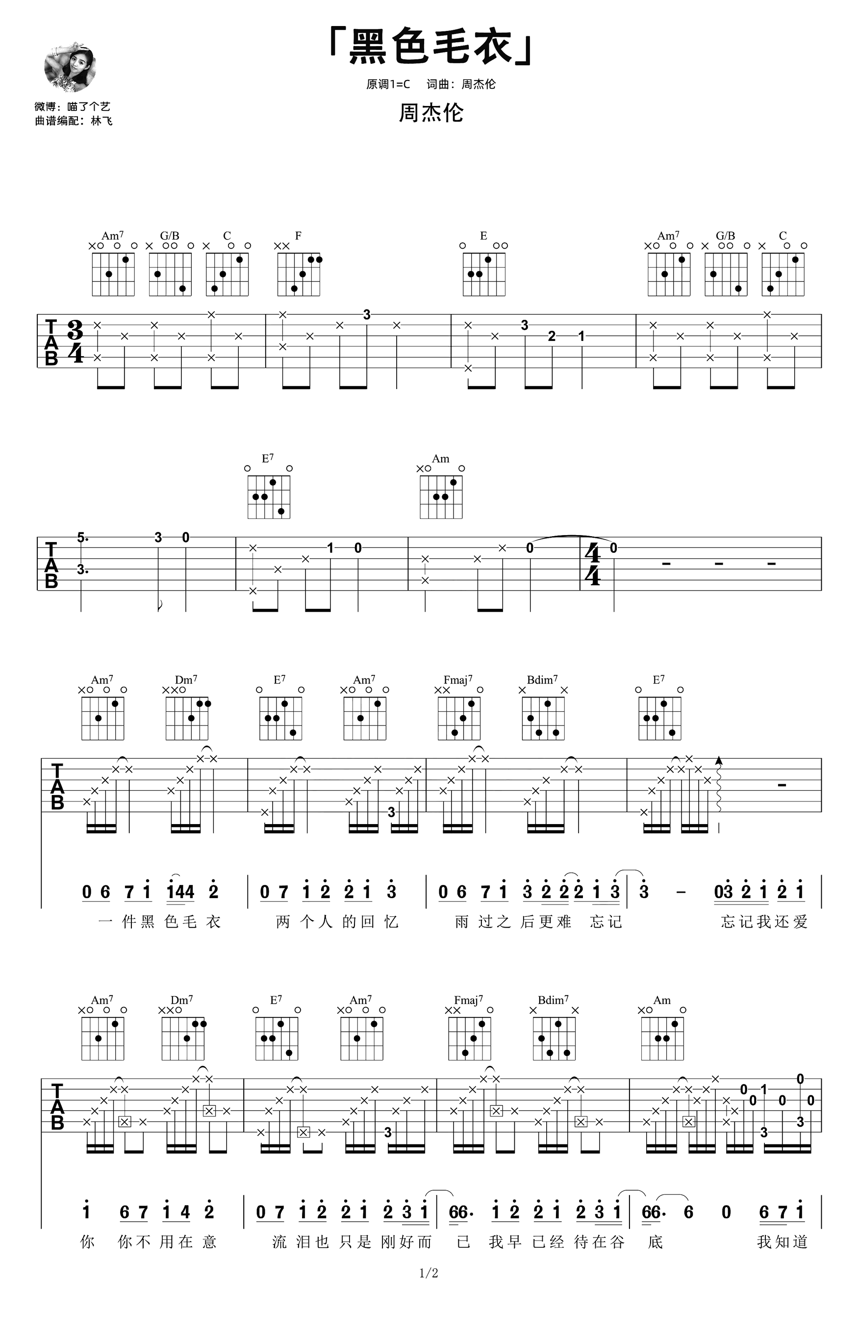 《康康《黑色毛衣吉他谱》(C调)》内容来自于互联网,不能保证内容的准确性与完整性,仅供学习交流欣赏,请勿用于其它用途,内容版权归原作者及来源网站所有,如有侵犯到您的权益请来信告知,我们将及时删除。