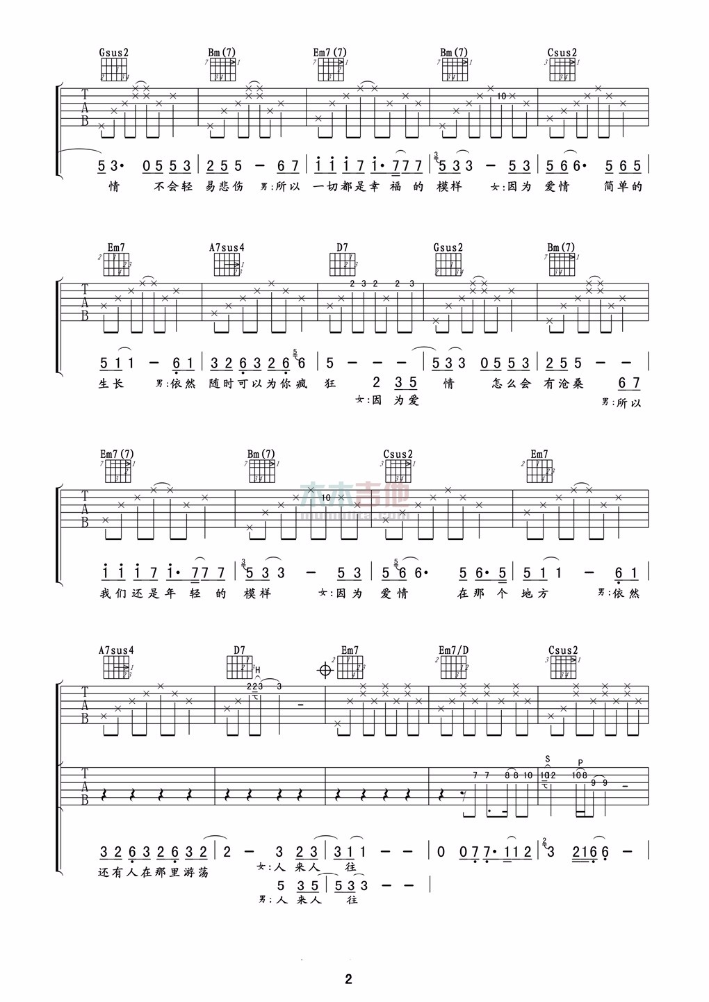 《陈奕迅《因为爱情(吉他谱》(G调)》内容来自于互联网,不能保证内容的准确性与完整性,仅供学习交流欣赏,请勿用于其它用途,内容版权归原作者及来源网站所有,如有侵犯到您的权益请来信告知,我们将及时删除。