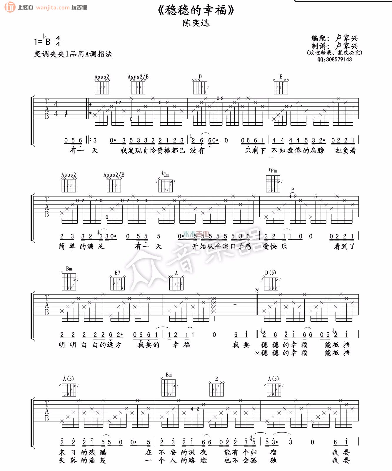 《陈奕迅《稳稳的幸福(吉他谱》(A调)》内容来自于互联网,不能保证内容的准确性与完整性,仅供学习交流欣赏,请勿用于其它用途,内容版权归原作者及来源网站所有,如有侵犯到您的权益请来信告知,我们将及时删除。