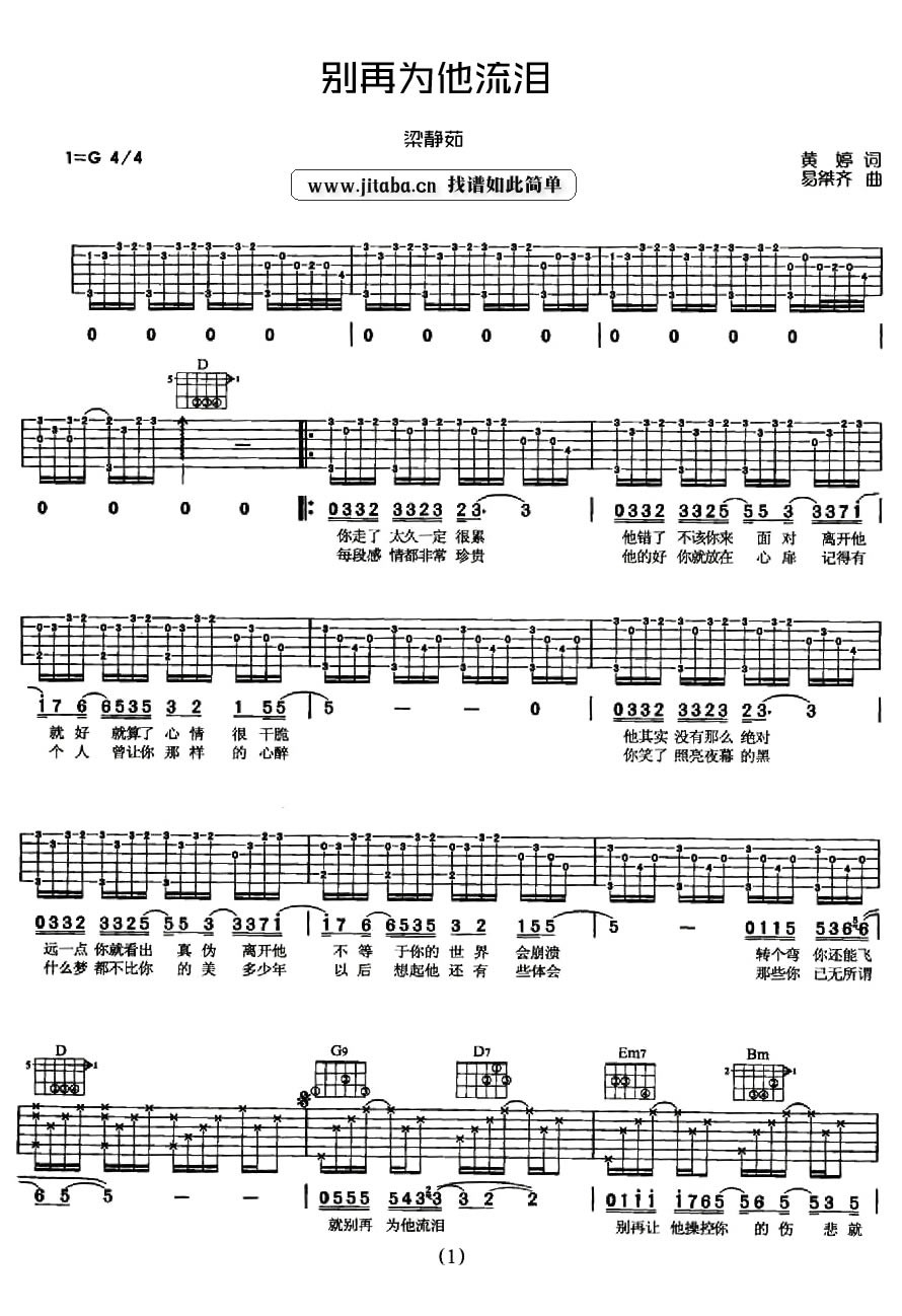 《梁静茹《别再为他流泪吉他谱》》内容来自于互联网,不能保证内容的准确性与完整性,仅供学习交流欣赏,请勿用于其它用途,内容版权归原作者及来源网站所有,如有侵犯到您的权益请来信告知,我们将及时删除。