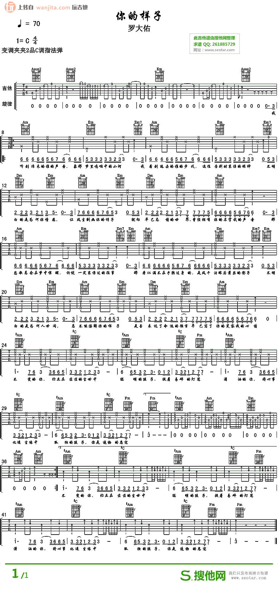 《罗大佑《你的样子吉他谱》(C调)》内容来自于互联网,不能保证内容的准确性与完整性,仅供学习交流欣赏,请勿用于其它用途,内容版权归原作者及来源网站所有,如有侵犯到您的权益请来信告知,我们将及时删除。