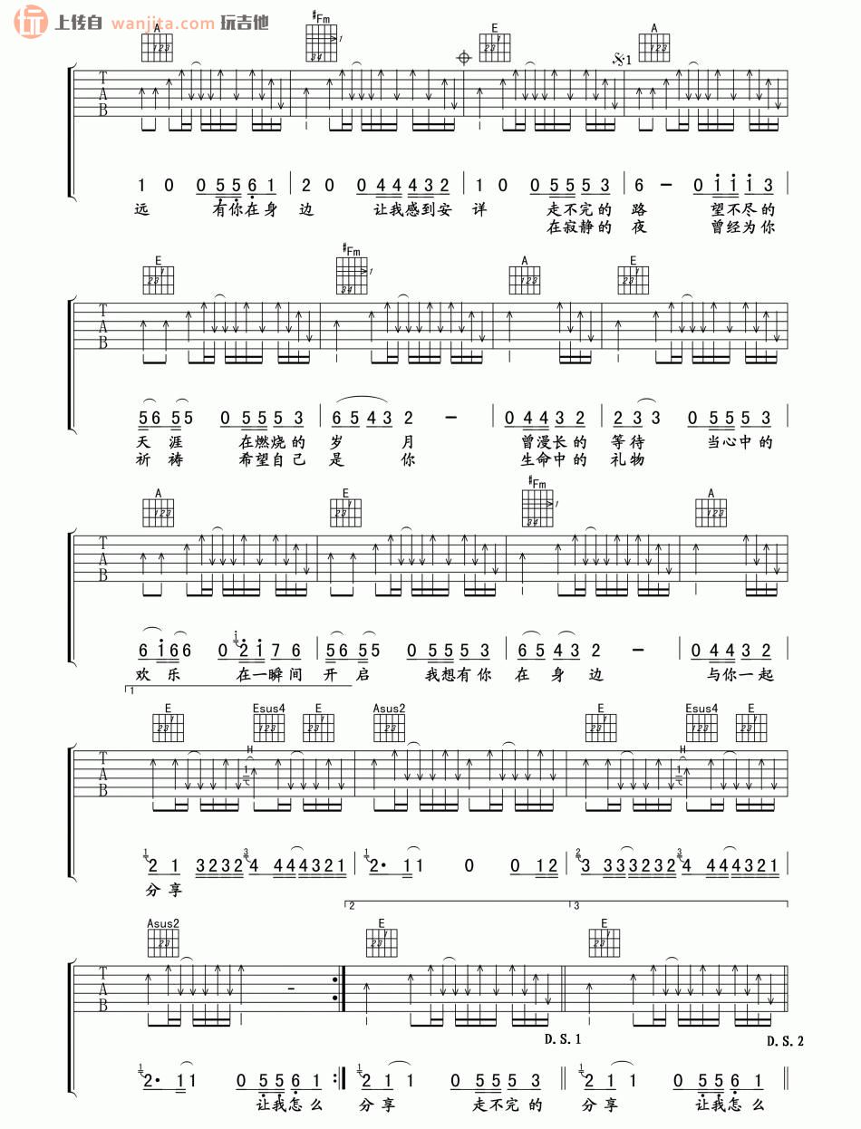 《许巍《礼物吉他谱》(E调)》内容来自于互联网,不能保证内容的准确性与完整性,仅供学习交流欣赏,请勿用于其它用途,内容版权归原作者及来源网站所有,如有侵犯到您的权益请来信告知,我们将及时删除。