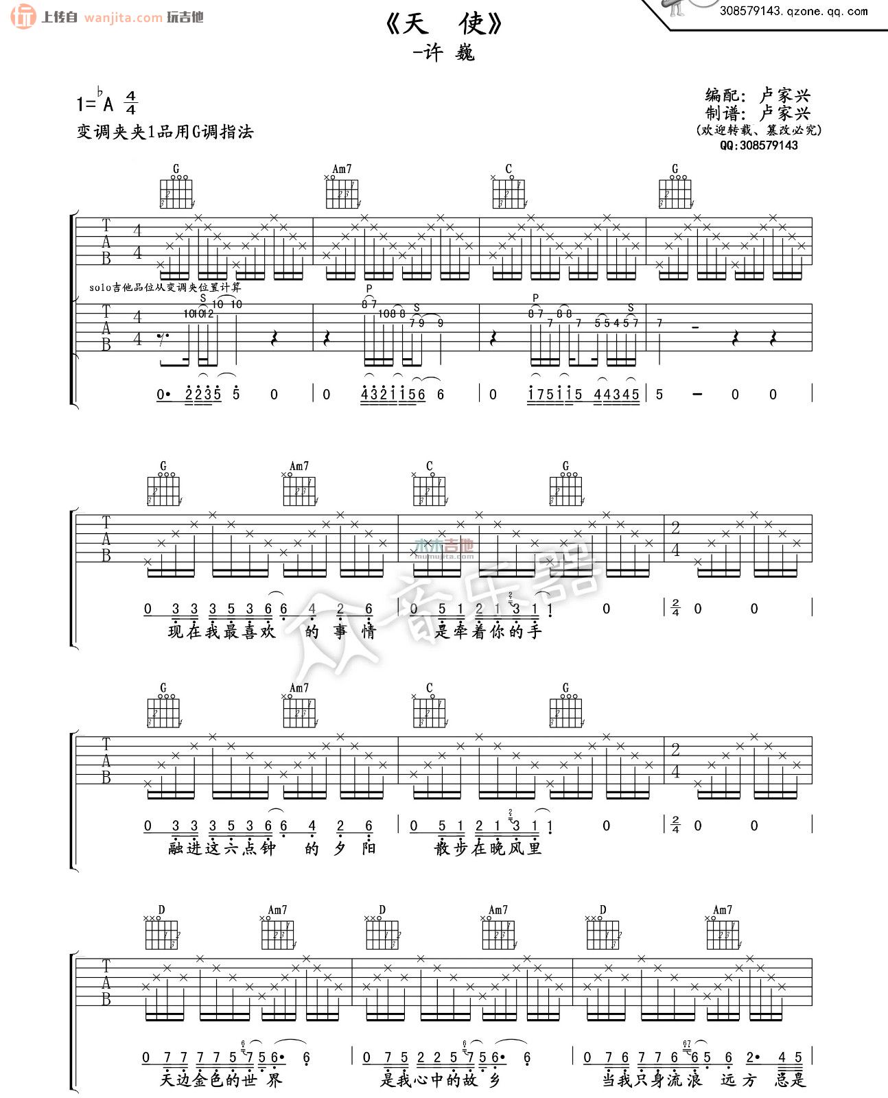 《许巍《天使吉他谱》(G调)》内容来自于互联网,不能保证内容的准确性与完整性,仅供学习交流欣赏,请勿用于其它用途,内容版权归原作者及来源网站所有,如有侵犯到您的权益请来信告知,我们将及时删除。