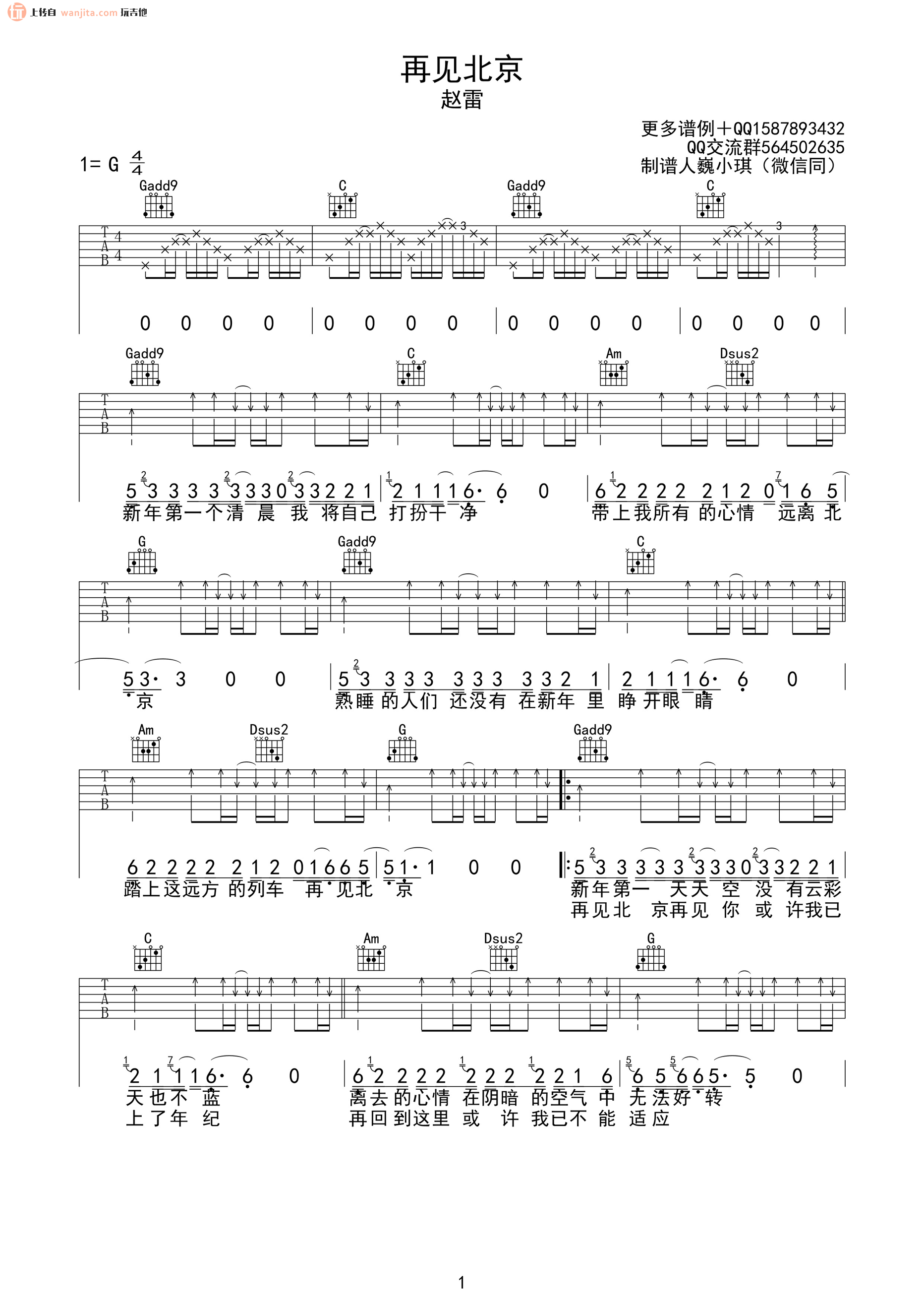 《赵雷《再见北京吉他谱》(G调)》内容来自于互联网,不能保证内容的准确性与完整性,仅供学习交流欣赏,请勿用于其它用途,内容版权归原作者及来源网站所有,如有侵犯到您的权益请来信告知,我们将及时删除。