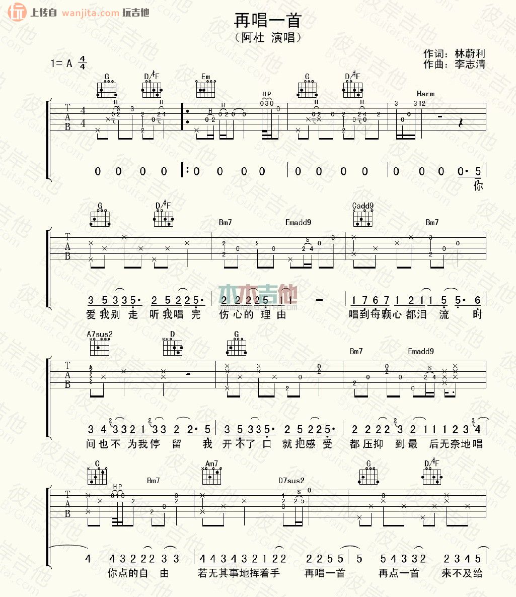 《阿杜《再唱一首吉他谱》(A调)》内容来自于互联网,不能保证内容的准确性与完整性,仅供学习交流欣赏,请勿用于其它用途,内容版权归原作者及来源网站所有,如有侵犯到您的权益请来信告知,我们将及时删除。