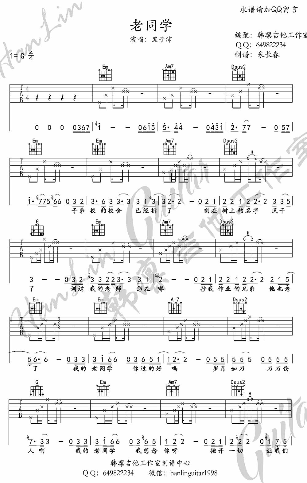 《《老同学吉他谱》》内容来自于互联网,不能保证内容的准确性与完整性,仅供学习交流欣赏,请勿用于其它用途,内容版权归原作者及来源网站所有,如有侵犯到您的权益请来信告知,我们将及时删除。