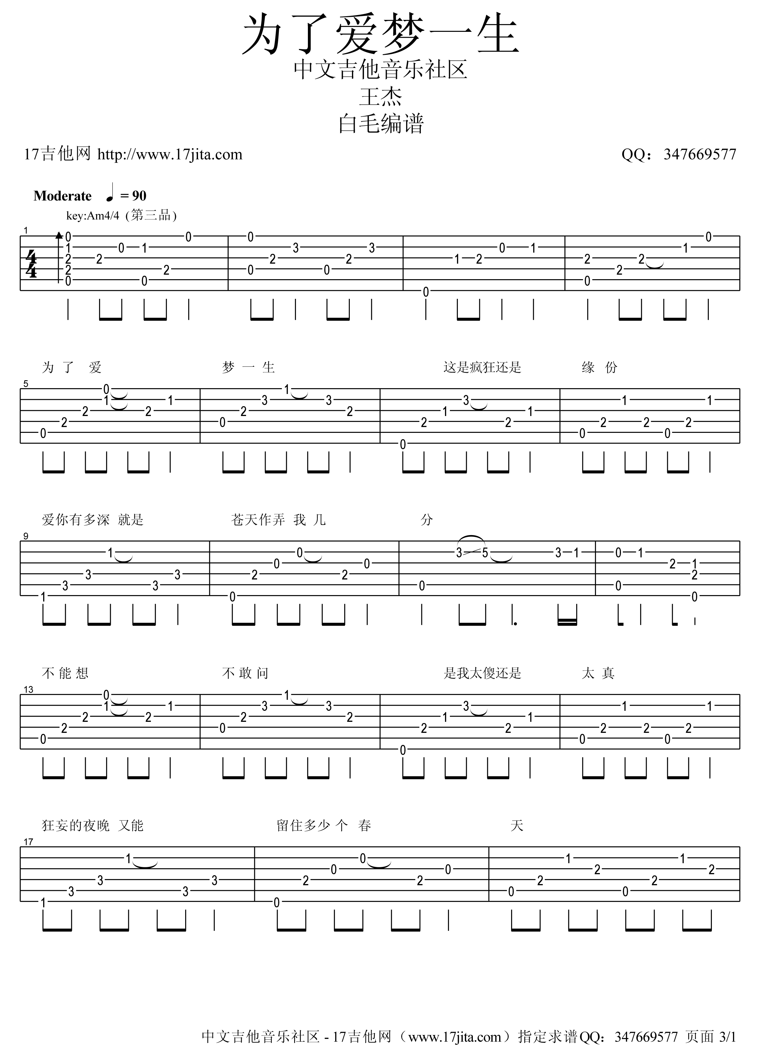 《王杰《为了爱梦一生吉他谱》》内容来自于互联网,不能保证内容的准确性与完整性,仅供学习交流欣赏,请勿用于其它用途,内容版权归原作者及来源网站所有,如有侵犯到您的权益请来信告知,我们将及时删除。
