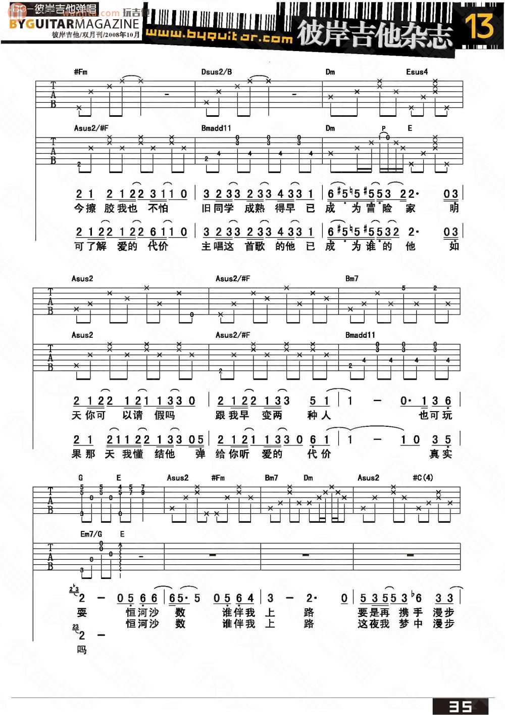 谢霆锋2002年的歌曲《一毫子》吉他谱,由彼岸吉他编配呈现。选用A调,需要留意降半音调弦。