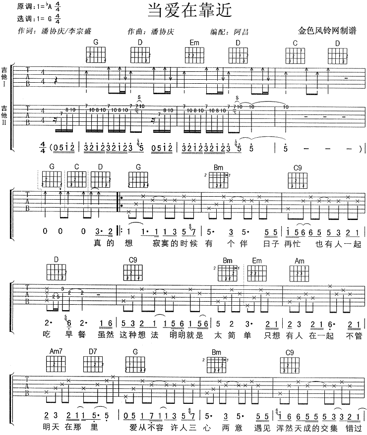 《刘若英《当爱在靠近吉他谱》(G调)》内容来自于互联网,不能保证内容的准确性与完整性,仅供学习交流欣赏,请勿用于其它用途,内容版权归原作者及来源网站所有,如有侵犯到您的权益请来信告知,我们将及时删除。