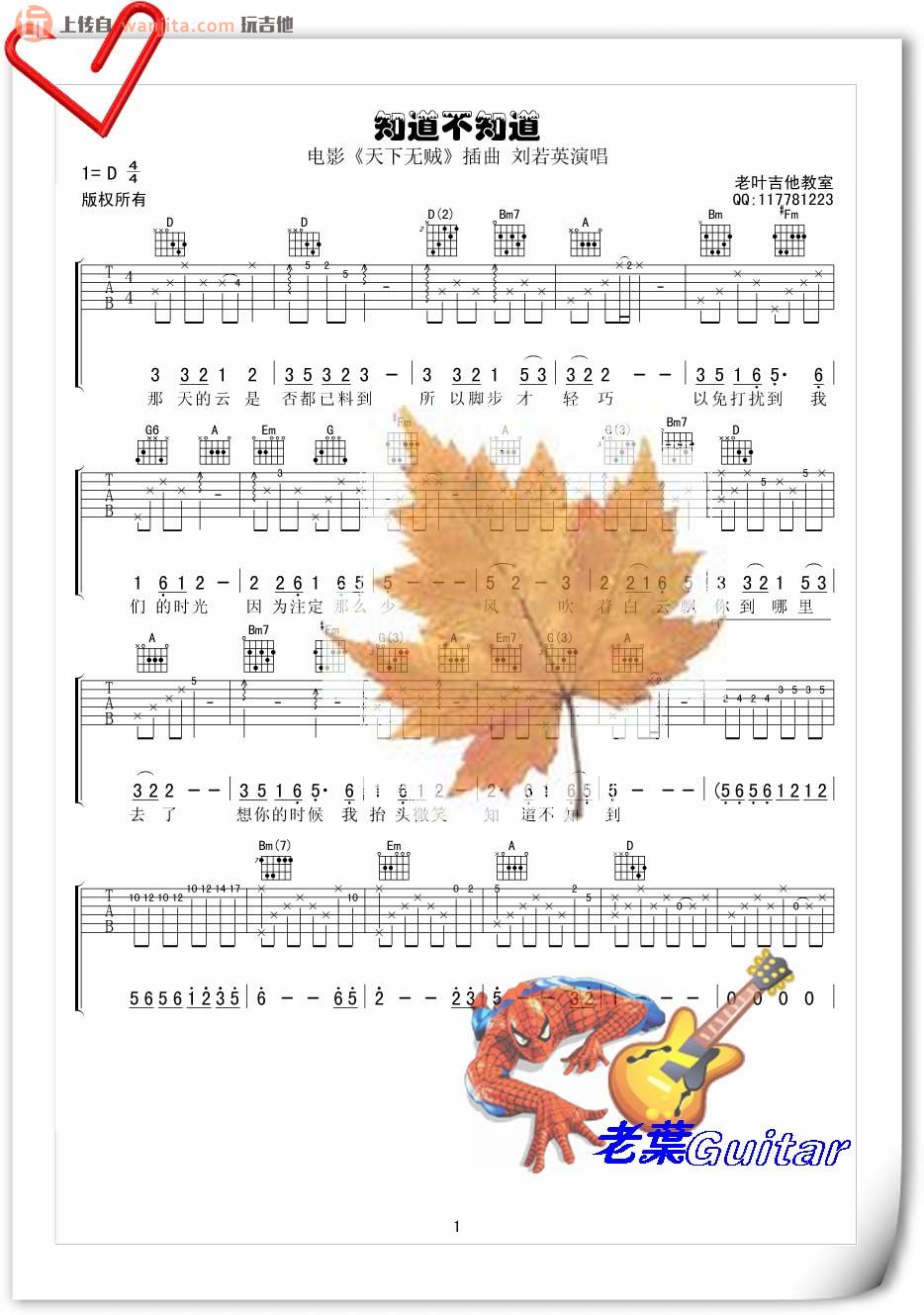 《刘若英《知道不知道吉他谱》(D调)》内容来自于互联网,不能保证内容的准确性与完整性,仅供学习交流欣赏,请勿用于其它用途,内容版权归原作者及来源网站所有,如有侵犯到您的权益请来信告知,我们将及时删除。