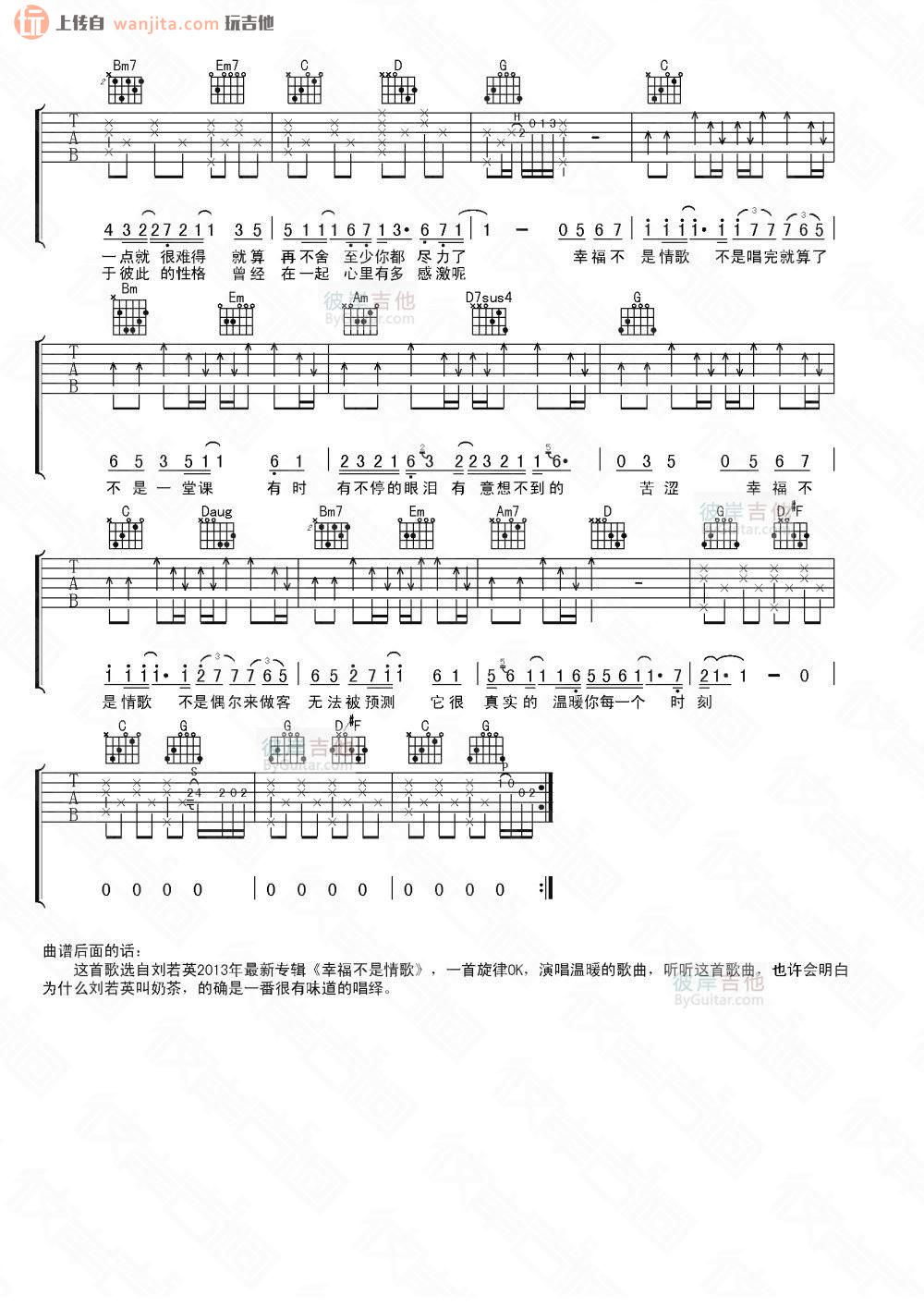 《刘若英《幸福不是情歌吉他谱》》内容来自于互联网,不能保证内容的准确性与完整性,仅供学习交流欣赏,请勿用于其它用途,内容版权归原作者及来源网站所有,如有侵犯到您的权益请来信告知,我们将及时删除。