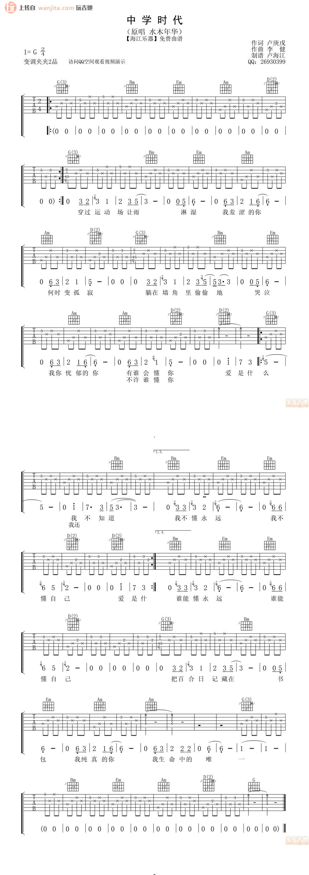 《水木年华《中学时代吉他谱》(G调)》内容来自于互联网,不能保证内容的准确性与完整性,仅供学习交流欣赏,请勿用于其它用途,内容版权归原作者及来源网站所有,如有侵犯到您的权益请来信告知,我们将及时删除。