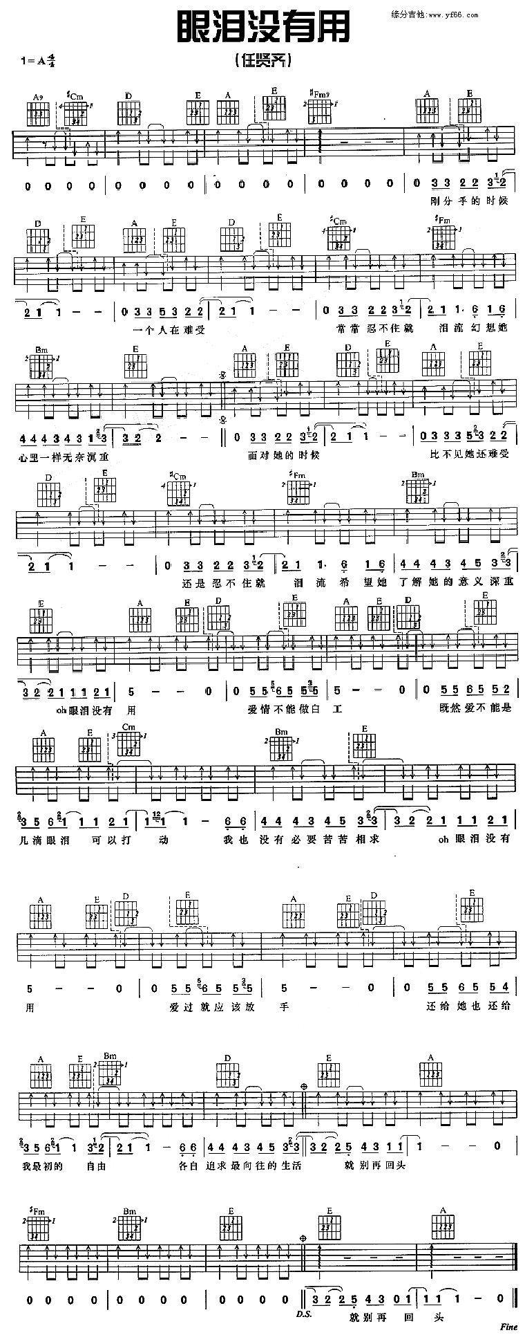 《任贤齐《眼泪没有用吉他谱》(A调)》内容来自于互联网,不能保证内容的准确性与完整性,仅供学习交流欣赏,请勿用于其它用途,内容版权归原作者及来源网站所有,如有侵犯到您的权益请来信告知,我们将及时删除。