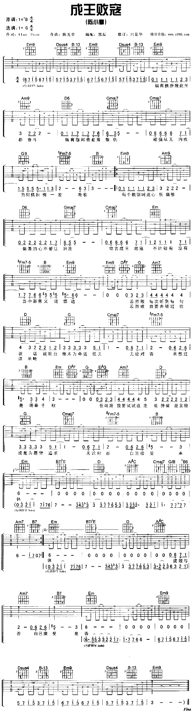 《陈小春《成王败寇吉他谱》(G调)》内容来自于互联网,不能保证内容的准确性与完整性,仅供学习交流欣赏,请勿用于其它用途,内容版权归原作者及来源网站所有,如有侵犯到您的权益请来信告知,我们将及时删除。