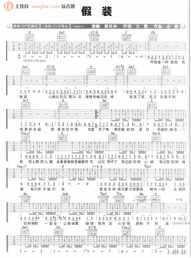 《蔡依林《假装吉他谱》(A调)》内容来自于互联网,不能保证内容的准确性与完整性,仅供学习交流欣赏,请勿用于其它用途,内容版权归原作者及来源网站所有,如有侵犯到您的权益请来信告知,我们将及时删除。