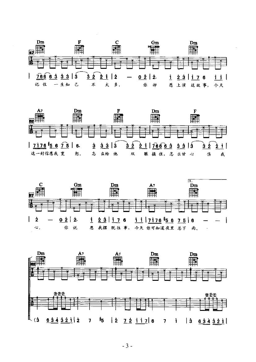 《宁静《今天夜里总下雨吉他谱》(F调)》内容来自于互联网,不能保证内容的准确性与完整性,仅供学习交流欣赏,请勿用于其它用途,内容版权归原作者及来源网站所有,如有侵犯到您的权益请来信告知,我们将及时删除。
