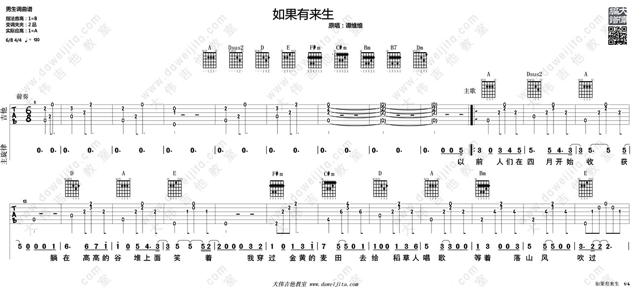 《宁静《如果有来生吉他谱》》内容来自于互联网,不能保证内容的准确性与完整性,仅供学习交流欣赏,请勿用于其它用途,内容版权归原作者及来源网站所有,如有侵犯到您的权益请来信告知,我们将及时删除。