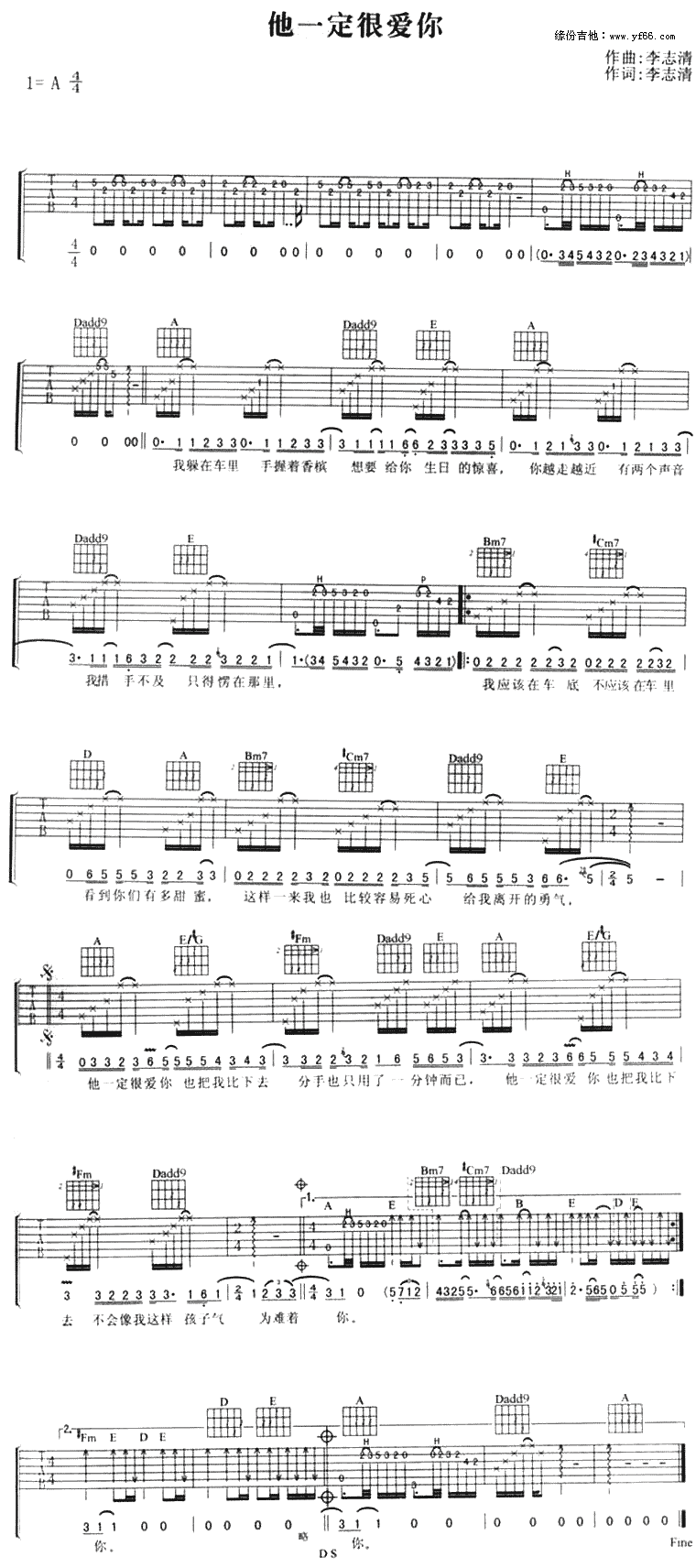 《阿杜《他一定很爱你吉他谱》(A调)》内容来自于互联网,不能保证内容的准确性与完整性,仅供学习交流欣赏,请勿用于其它用途,内容版权归原作者及来源网站所有,如有侵犯到您的权益请来信告知,我们将及时删除。