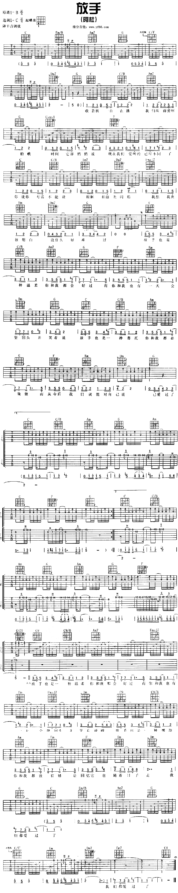 《阿杜《放手吉他谱》(C调)》内容来自于互联网,不能保证内容的准确性与完整性,仅供学习交流欣赏,请勿用于其它用途,内容版权归原作者及来源网站所有,如有侵犯到您的权益请来信告知,我们将及时删除。