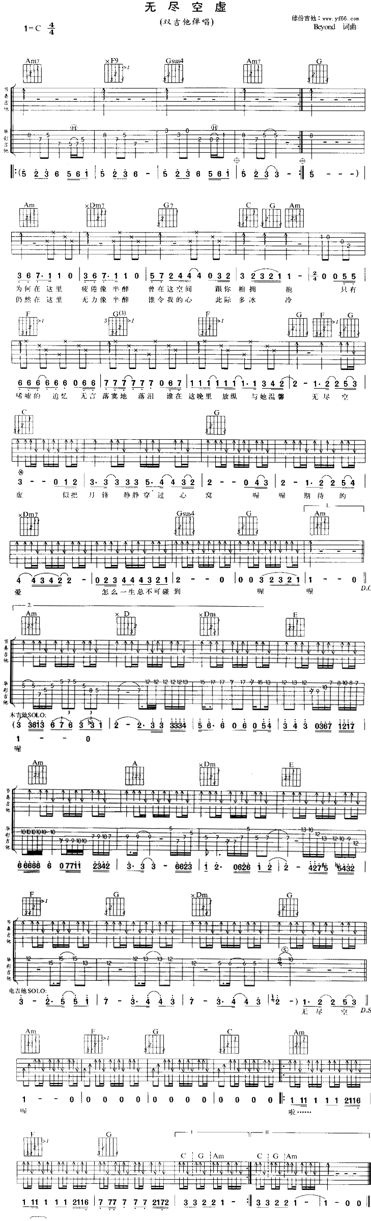 《Beyond《无尽空虚吉他谱》(C调)》内容来自于互联网,不能保证内容的准确性与完整性,仅供学习交流欣赏,请勿用于其它用途,内容版权归原作者及来源网站所有,如有侵犯到您的权益请来信告知,我们将及时删除。