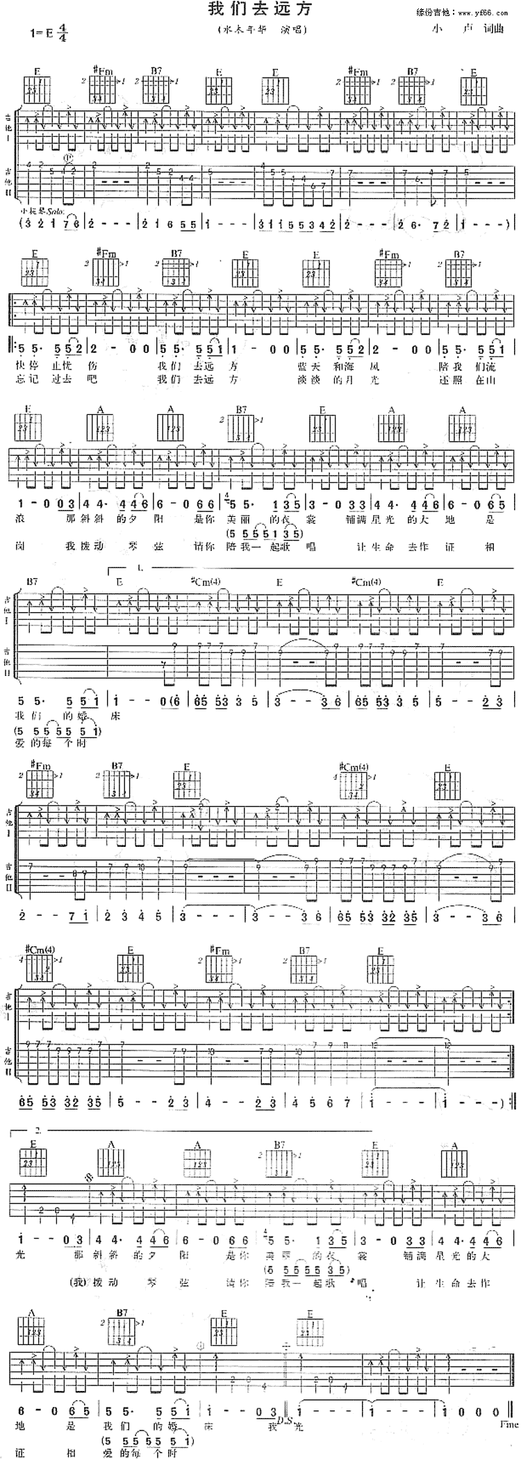 《水木年华《我们去远方吉他谱》(E调)》内容来自于互联网,不能保证内容的准确性与完整性,仅供学习交流欣赏,请勿用于其它用途,内容版权归原作者及来源网站所有,如有侵犯到您的权益请来信告知,我们将及时删除。