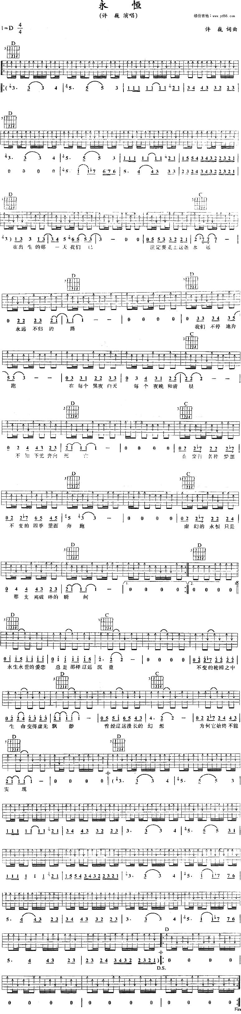 《许巍《永恒吉他谱》(D调)》内容来自于互联网,不能保证内容的准确性与完整性,仅供学习交流欣赏,请勿用于其它用途,内容版权归原作者及来源网站所有,如有侵犯到您的权益请来信告知,我们将及时删除。
