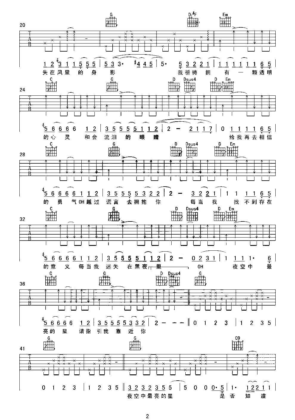 《逃跑计划《夜空中最亮的星吉他谱》(B调)》内容来自于互联网,不能保证内容的准确性与完整性,仅供学习交流欣赏,请勿用于其它用途,内容版权归原作者及来源网站所有,如有侵犯到您的权益请来信告知,我们将及时删除。