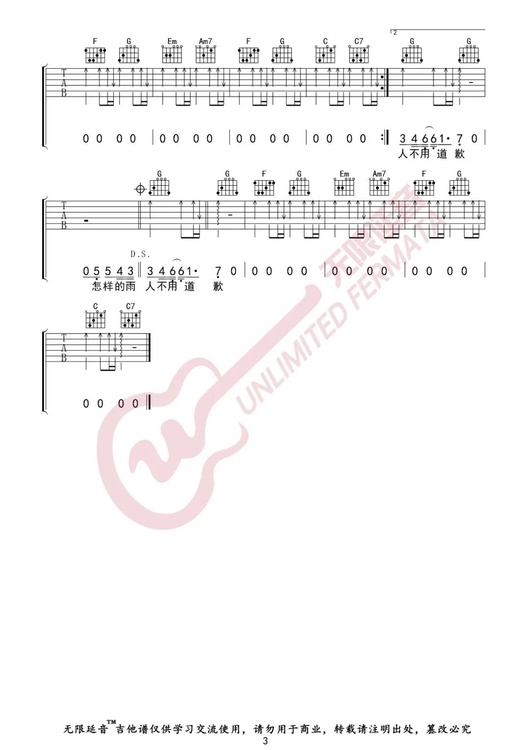 《梁心颐《下雨天吉他谱》(G调)》内容来自于互联网,不能保证内容的准确性与完整性,仅供学习交流欣赏,请勿用于其它用途,内容版权归原作者及来源网站所有,如有侵犯到您的权益请来信告知,我们将及时删除。