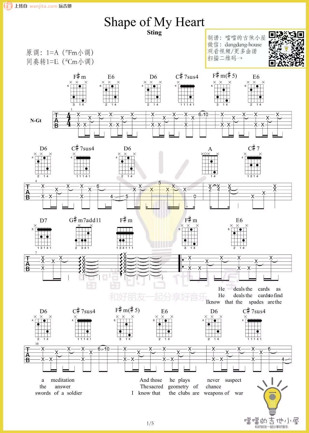 《Shape of my Heart》是一首深情而动人的吉他弹唱曲目。这首歌曲以优美的旋律和深沉的歌词展现了内心的情感世界。演示视频展示了如何用吉他演奏并演唱这首歌曲,以指导和示范的形式呈现。通过视频,观众可以学习并感受到这首曲目的演奏技巧和歌词情感,带着旋律