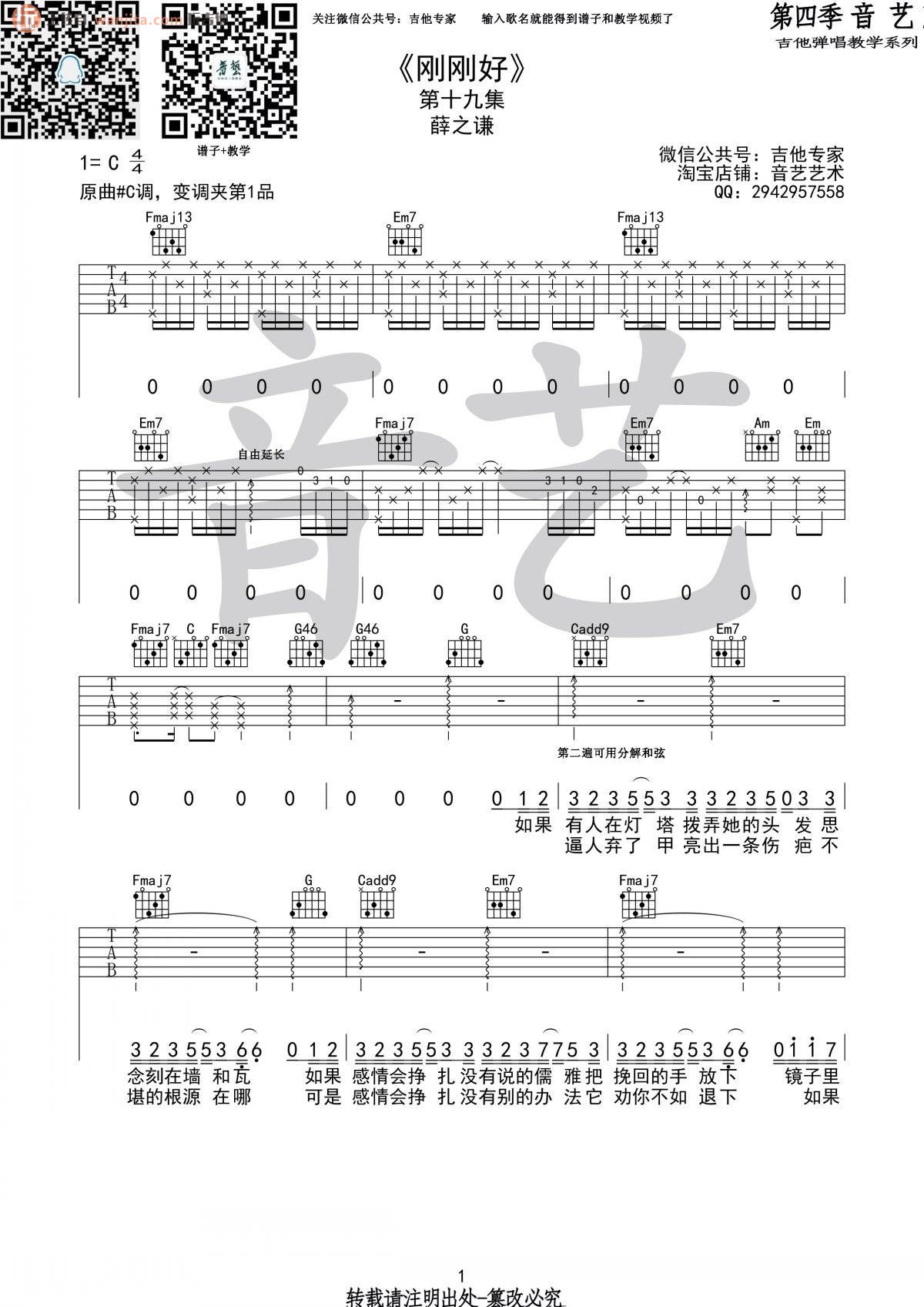 《薛之谦《刚刚好吉他谱》(C调)》内容来自于互联网,不能保证内容的准确性与完整性,仅供学习交流欣赏,请勿用于其它用途,内容版权归原作者及来源网站所有,如有侵犯到您的权益请来信告知,我们将及时删除。
