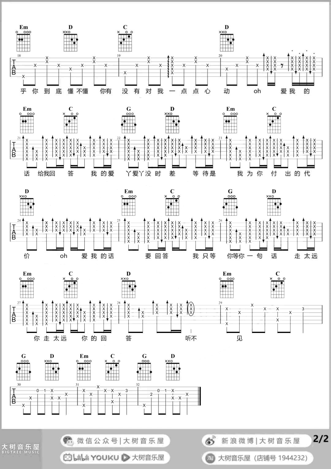 这是BY2的热门歌曲《爱丫爱丫》吉他谱,是一首充满怀旧情感的老歌,最近备受欢迎的翻唱之作。歌曲原调为A,可选G调,使用变调夹夹在二品。男生可以根据自己的音域夹3-4品,提高演唱舒适度。附带三张谱例图片供学习参考。配套有《爱丫爱丫》吉他弹唱演示+教学视频,感谢橙