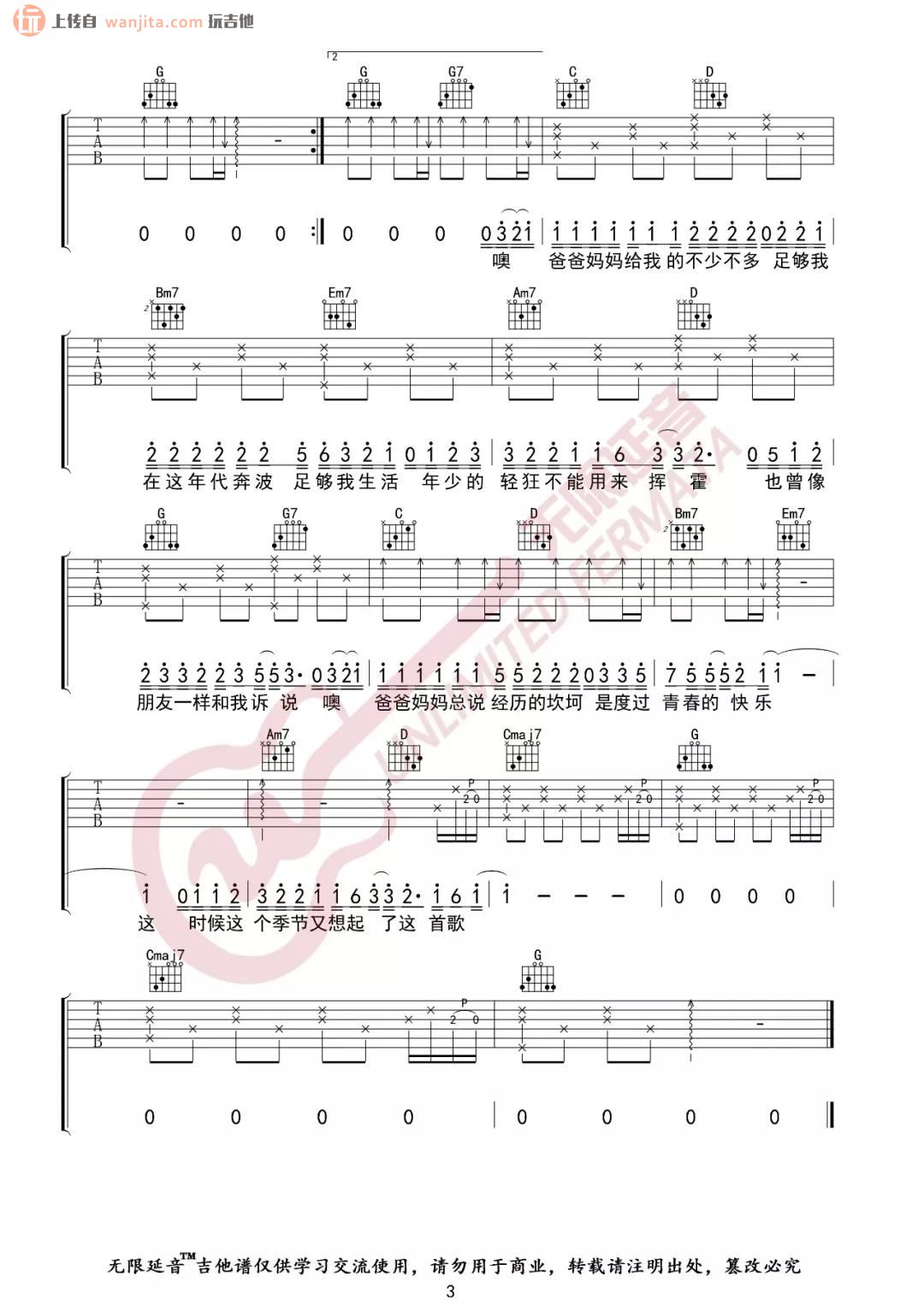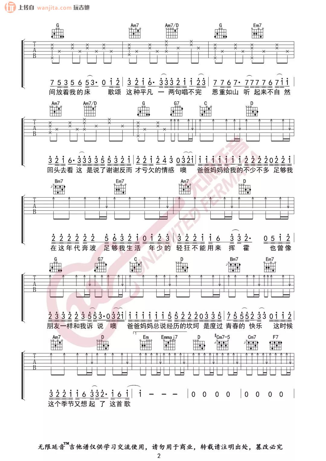 《李荣浩《爸爸妈妈吉他谱》(G调)》内容来自于互联网,不能保证内容的准确性与完整性,仅供学习交流欣赏,请勿用于其它用途,内容版权归原作者及来源网站所有,如有侵犯到您的权益请来信告知,我们将及时删除。