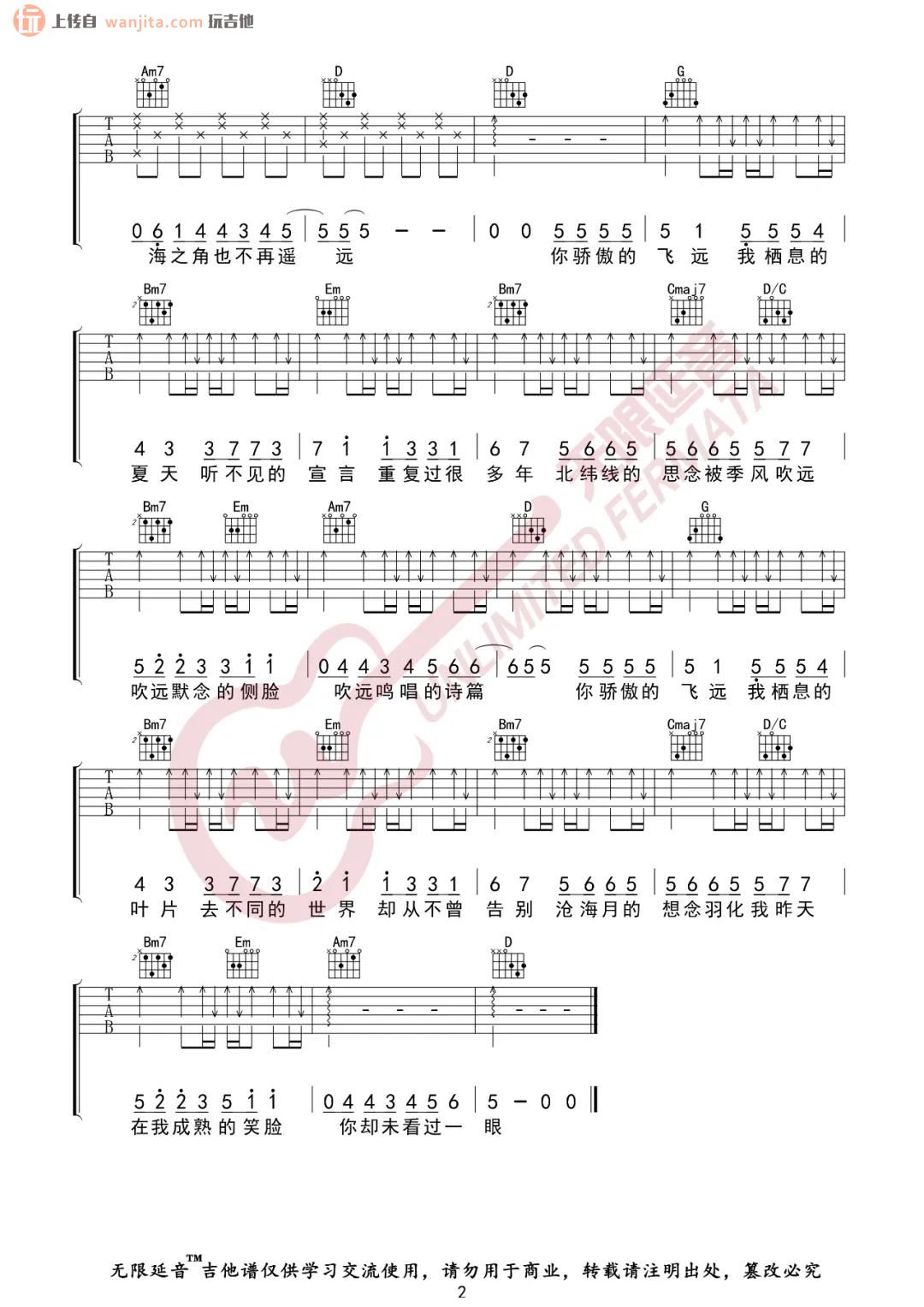 《任然《飞鸟和蝉吉他谱》(G调)》内容来自于互联网,不能保证内容的准确性与完整性,仅供学习交流欣赏,请勿用于其它用途,内容版权归原作者及来源网站所有,如有侵犯到您的权益请来信告知,我们将及时删除。