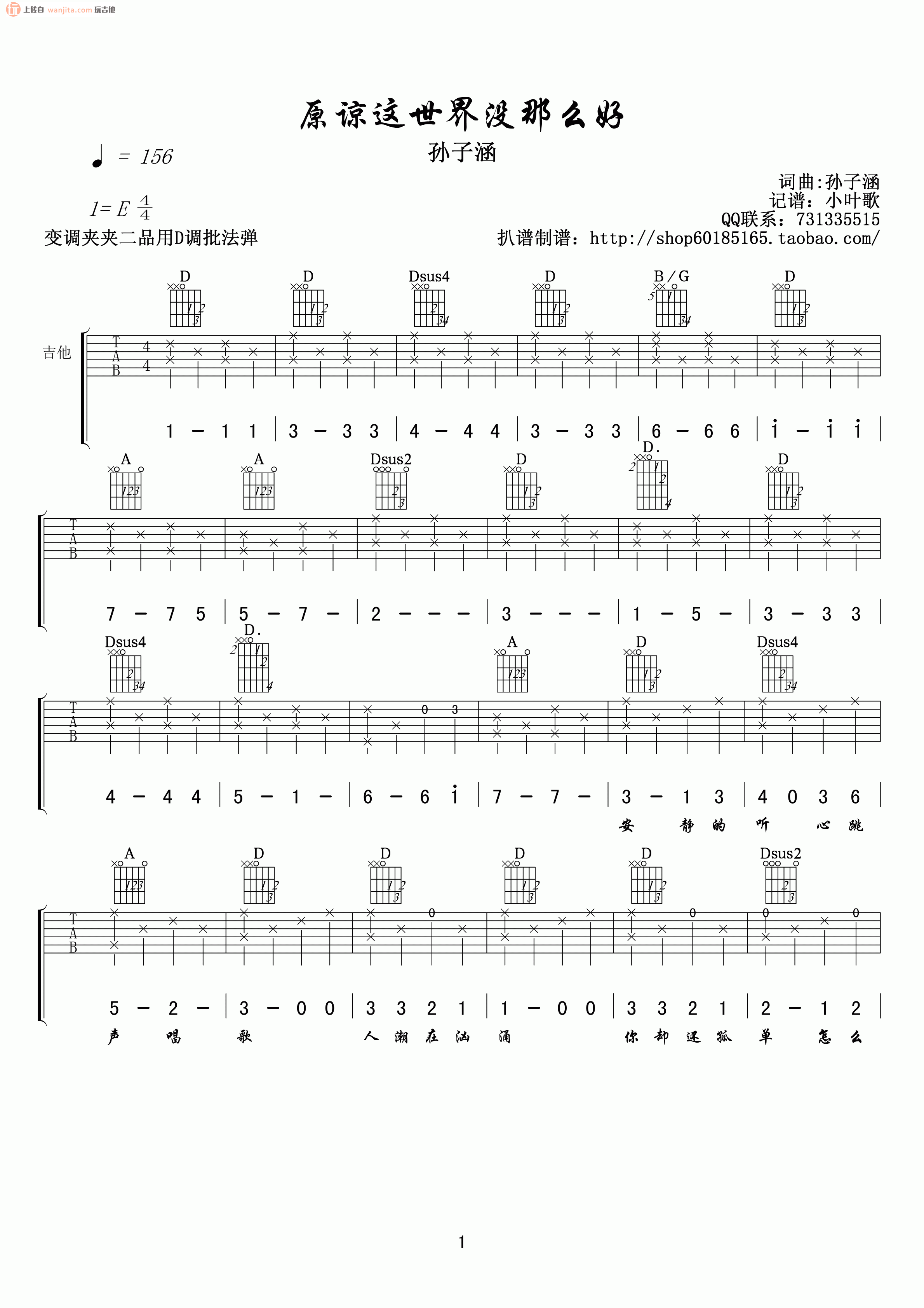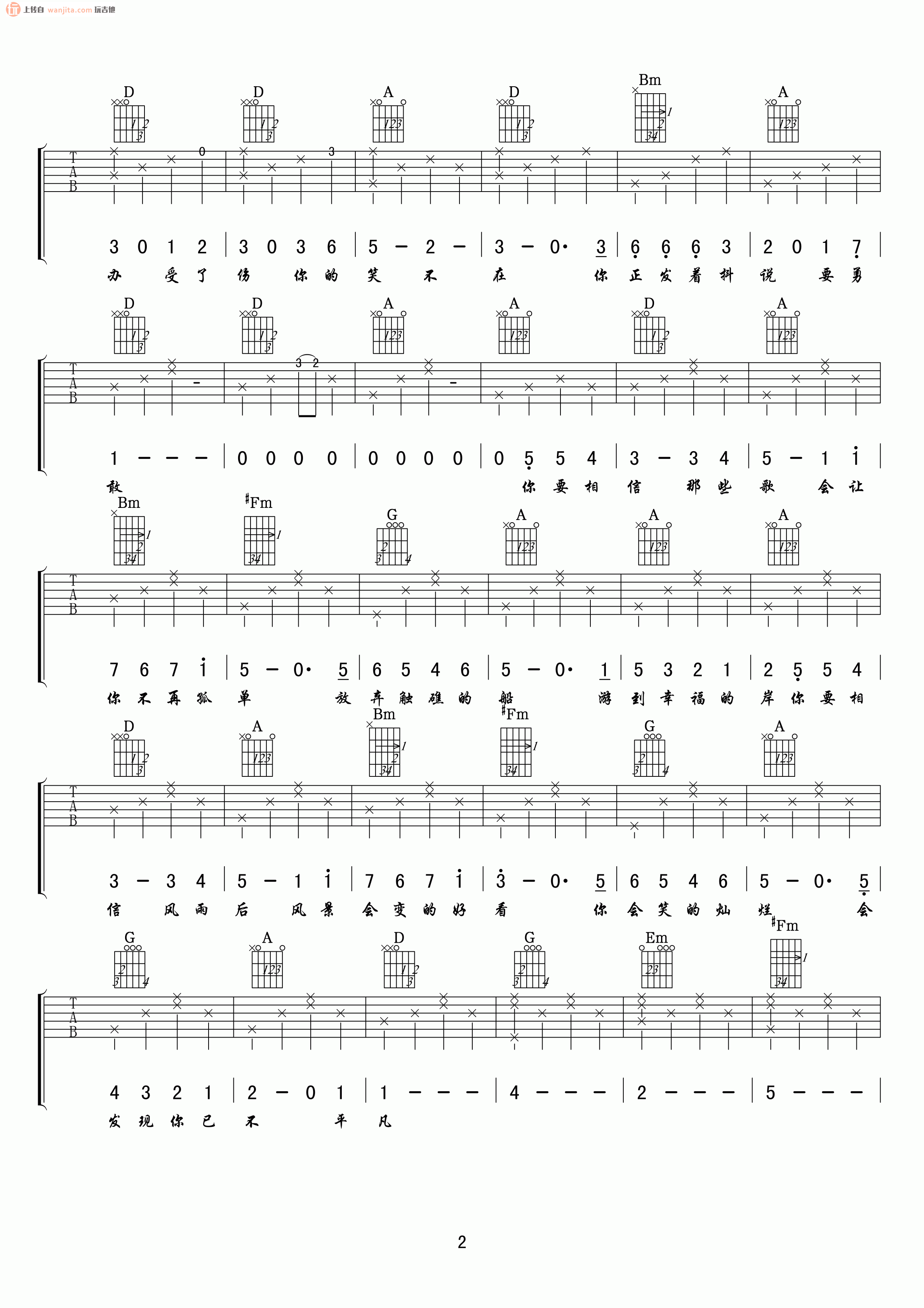 您现在的位置是:首页 > 吉他谱 > 《原谅这世界没那么好吉他谱》(D调) 《原谅这世界没那么好吉他谱》(D调) 日期:2024-07-20 10:15:01 这首歌曲《原谅这世界没那么好》的吉他谱包含6张高清图片,曲谱完整,节奏简单,采用分解和弦的弹奏方式。原调为E调,但建议使用D调指法演奏,可以通过变调夹在第2品处实现。