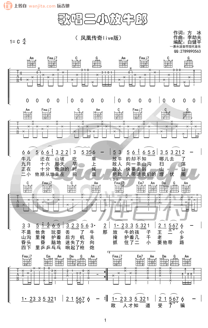 《凤凰传奇《歌唱二小放牛郎吉他谱》(C调)》内容来自于互联网,不能保证内容的准确性与完整性,仅供学习交流欣赏,请勿用于其它用途,内容版权归原作者及来源网站所有,如有侵犯到您的权益请来信告知,我们将及时删除。