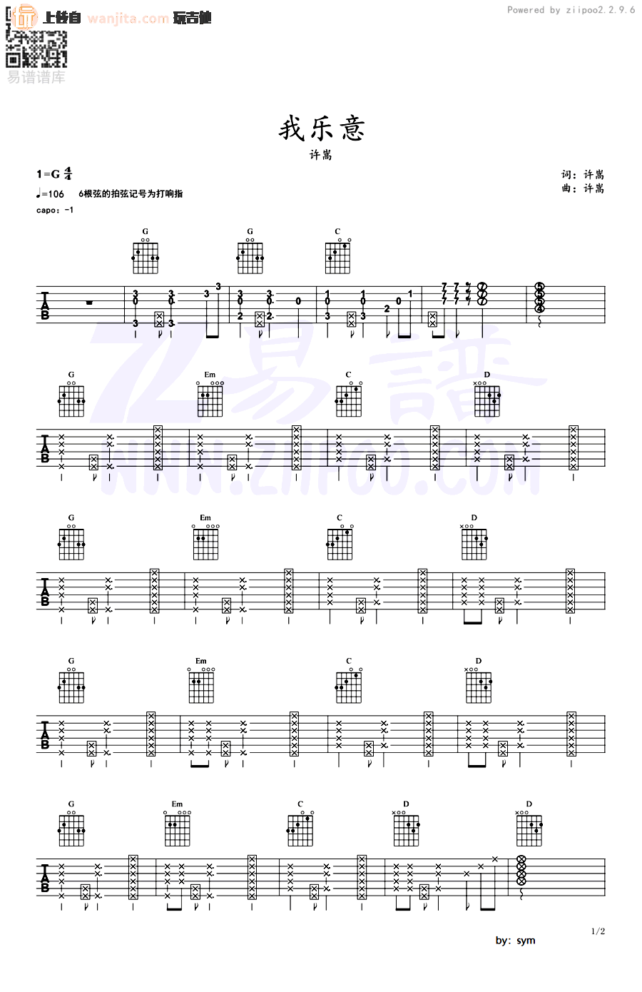 《许嵩《我乐意吉他谱》(G调)》内容来自于互联网,不能保证内容的准确性与完整性,仅供学习交流欣赏,请勿用于其它用途,内容版权归原作者及来源网站所有,如有侵犯到您的权益请来信告知,我们将及时删除。