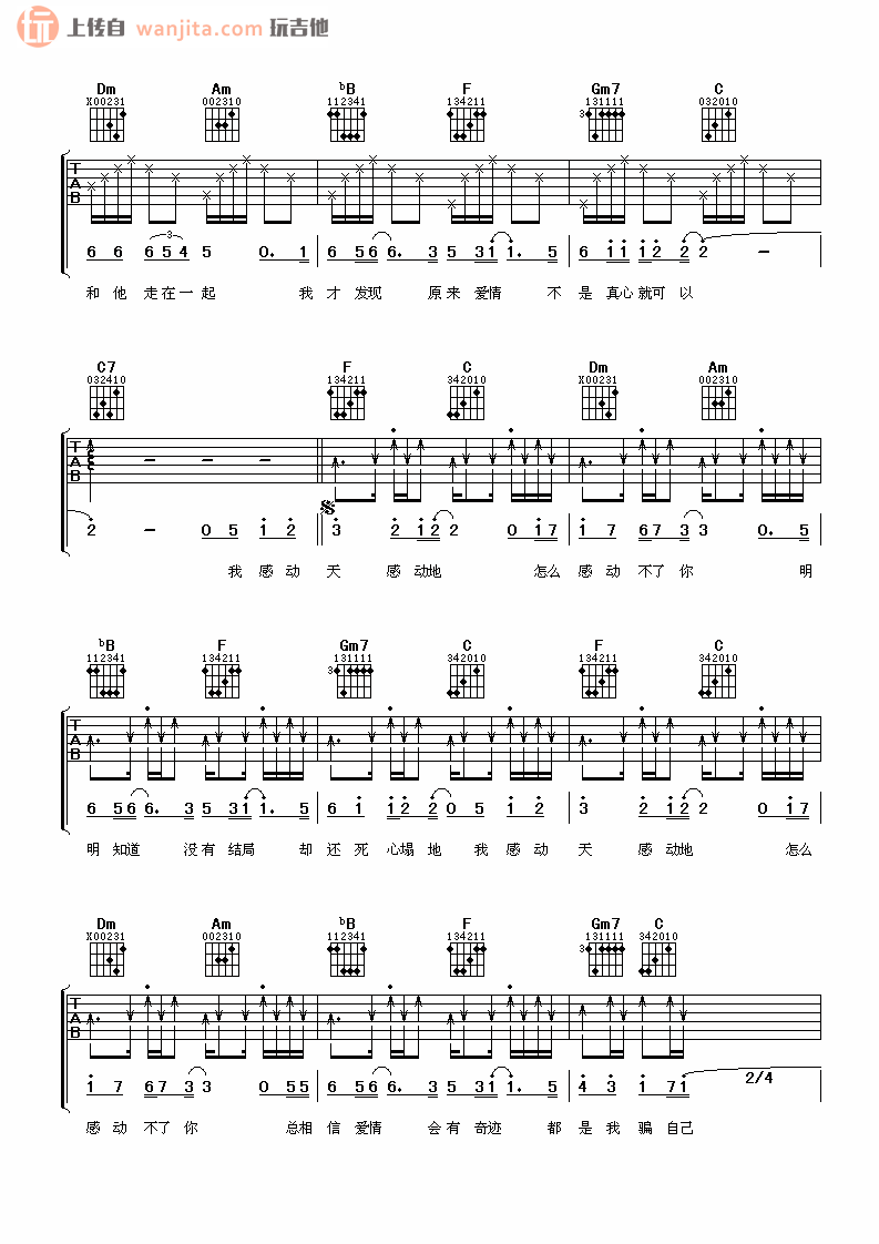 《宇桐非《感动天感动地吉他谱》(F调)》内容来自于互联网,不能保证内容的准确性与完整性,仅供学习交流欣赏,请勿用于其它用途,内容版权归原作者及来源网站所有,如有侵犯到您的权益请来信告知,我们将及时删除。