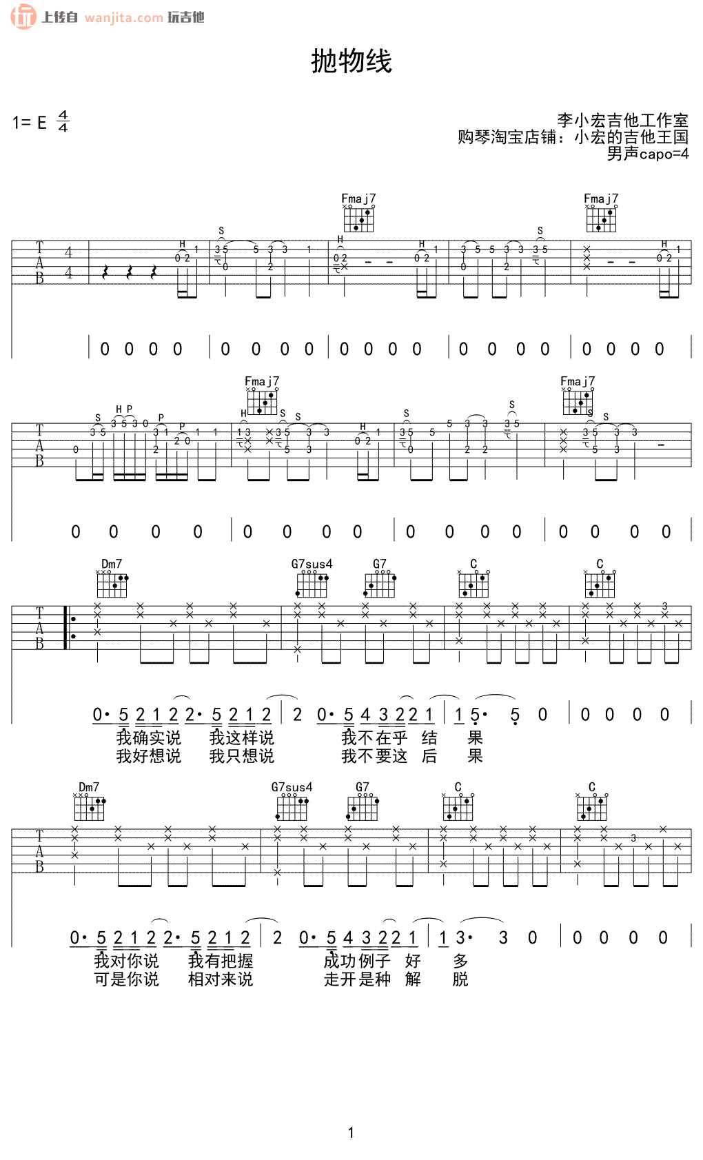 《抛物线》吉他谱以E调为基准,提供了完整的前奏部分,总共包含4张高清图片谱。建议使用变调夹夹在4品处演奏,使演奏更加流畅。喜欢的朋友可以先进行简单练习,然后逐渐掌握演奏技巧。