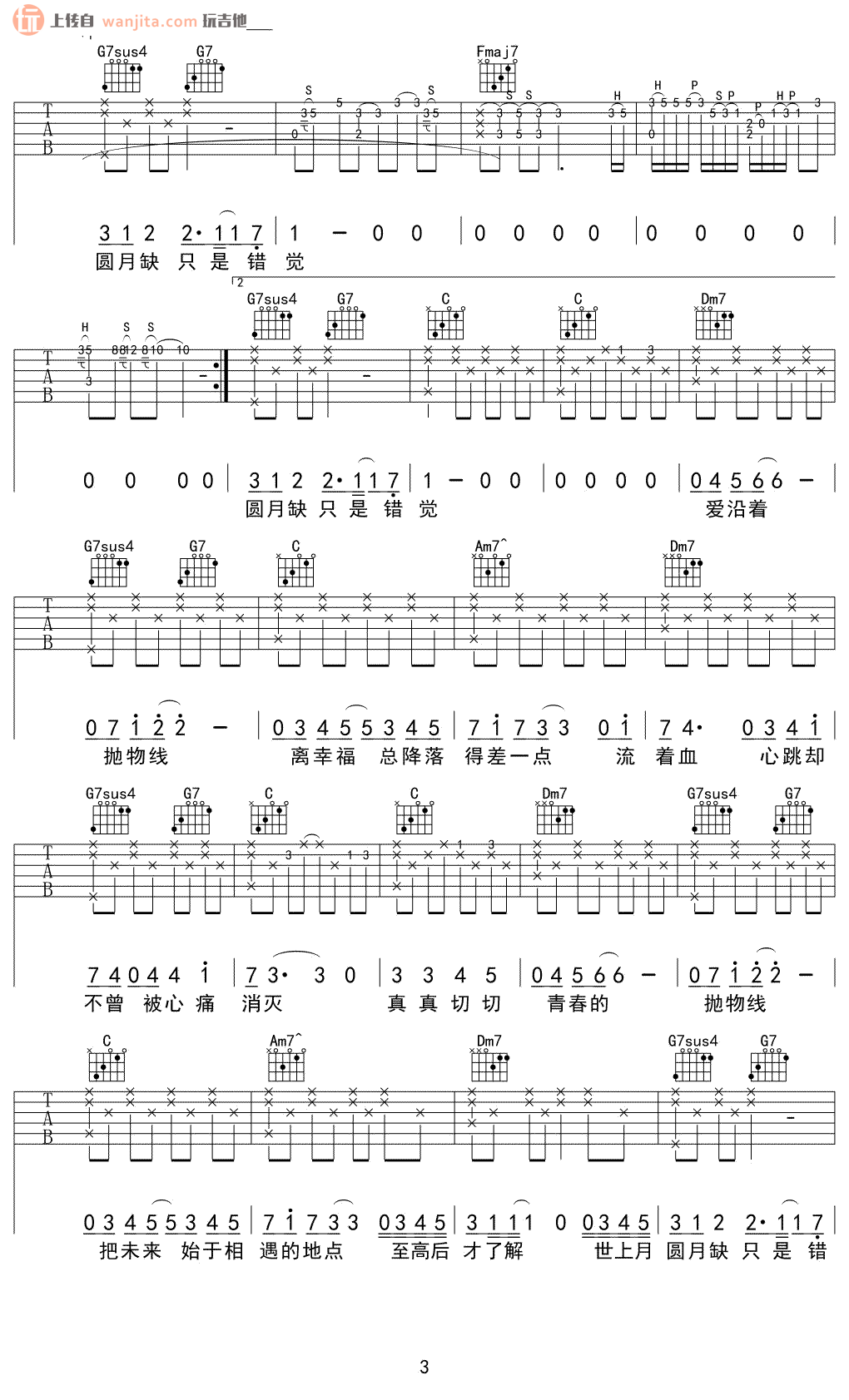 《蔡健雅《抛物线吉他谱》(E调)》内容来自于互联网,不能保证内容的准确性与完整性,仅供学习交流欣赏,请勿用于其它用途,内容版权归原作者及来源网站所有,如有侵犯到您的权益请来信告知,我们将及时删除。