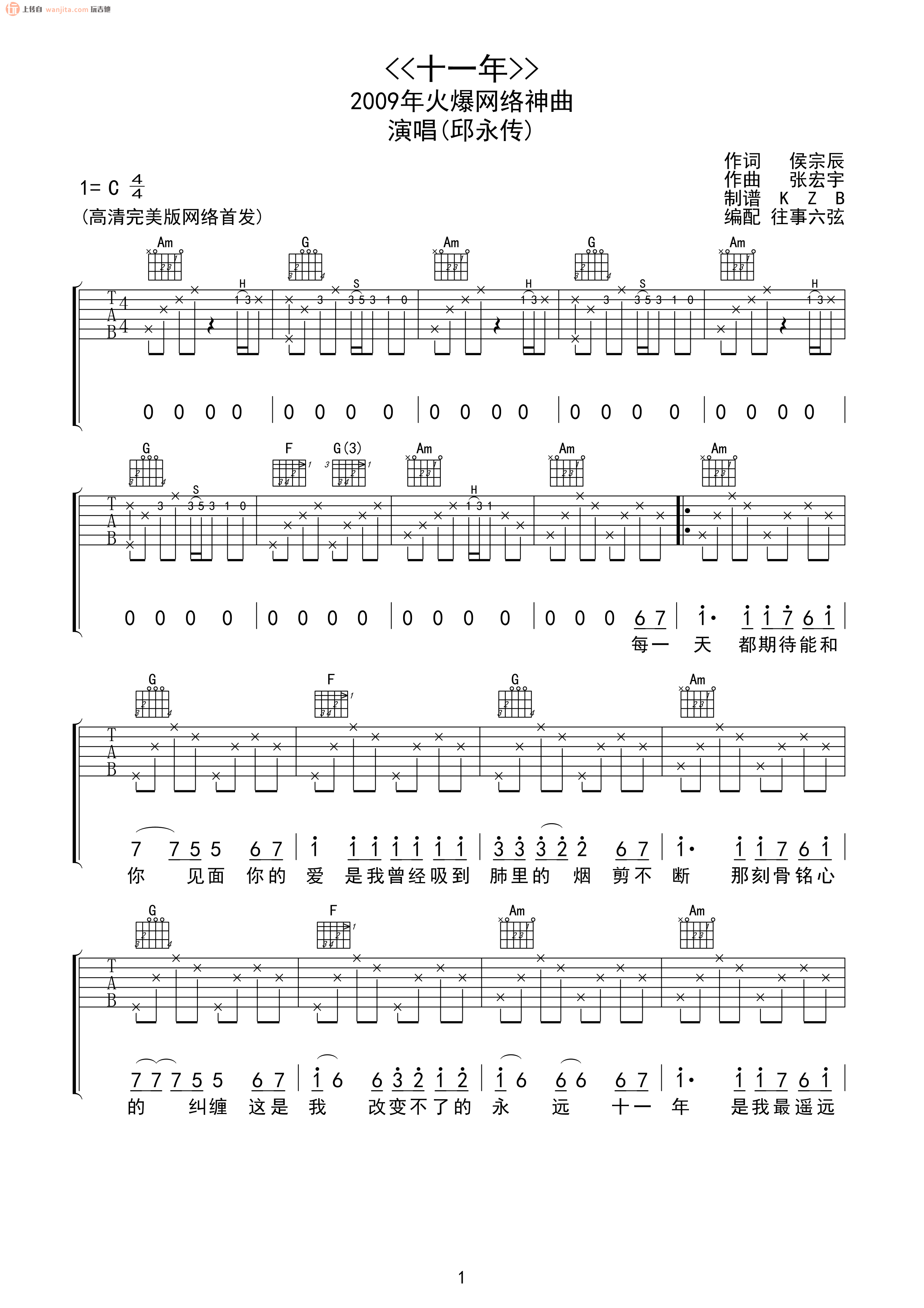 《《十一年吉他谱》(C调)》内容来自于互联网,不能保证内容的准确性与完整性,仅供学习交流欣赏,请勿用于其它用途,内容版权归原作者及来源网站所有,如有侵犯到您的权益请来信告知,我们将及时删除。