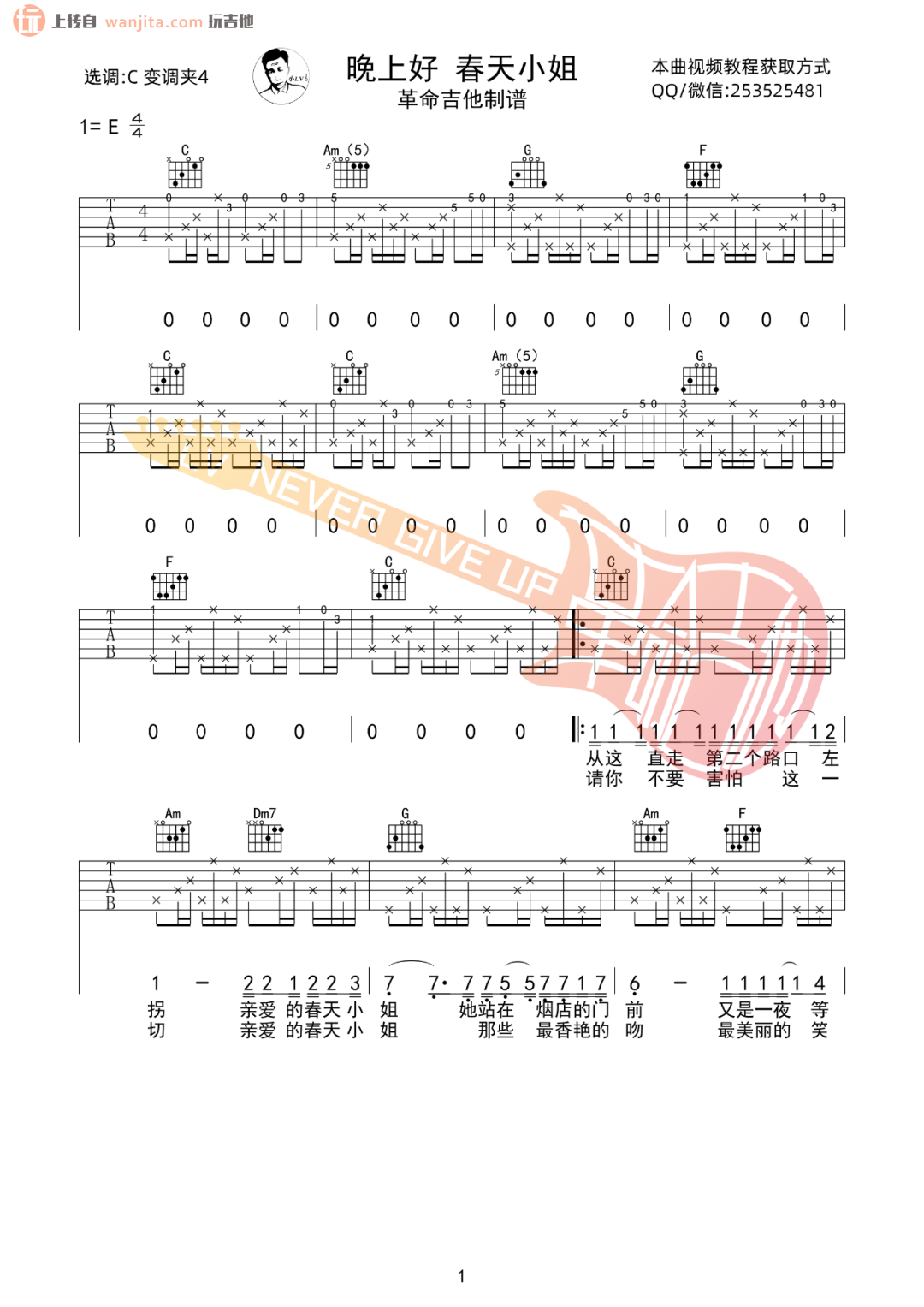 《宁静《晚上好春天小姐吉他谱》(C调)》内容来自于互联网,不能保证内容的准确性与完整性,仅供学习交流欣赏,请勿用于其它用途,内容版权归原作者及来源网站所有,如有侵犯到您的权益请来信告知,我们将及时删除。