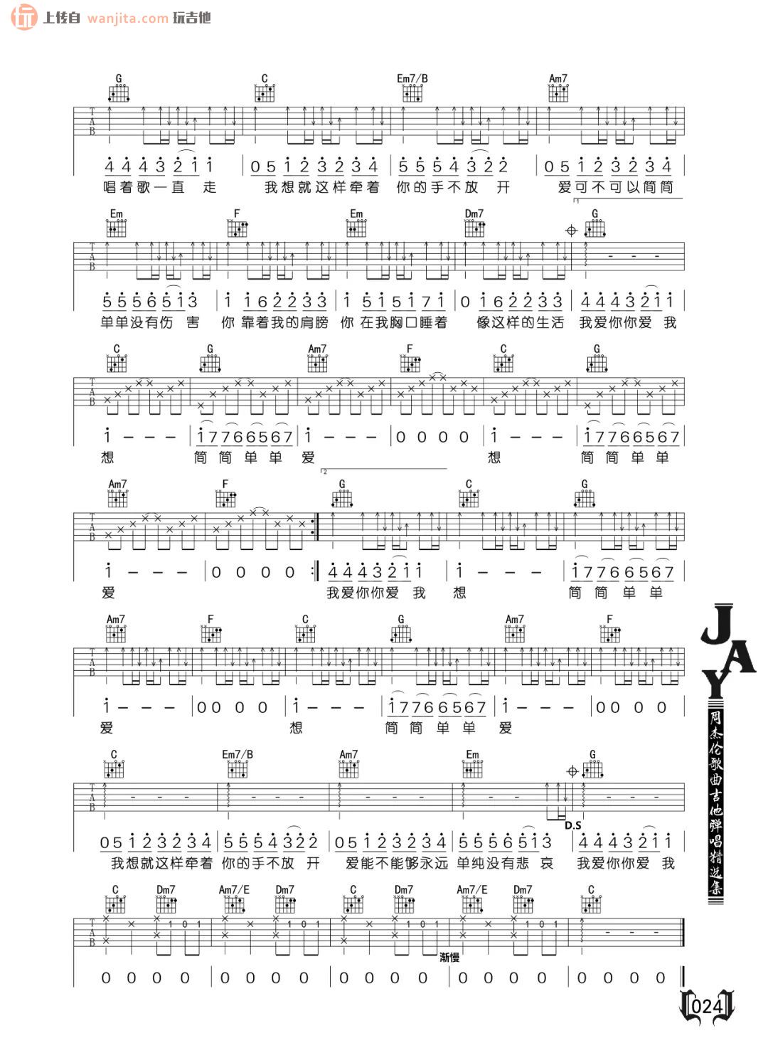 《周杰伦《简单爱吉他谱》(C调)》内容来自于互联网,不能保证内容的准确性与完整性,仅供学习交流欣赏,请勿用于其它用途,内容版权归原作者及来源网站所有,如有侵犯到您的权益请来信告知,我们将及时删除。
