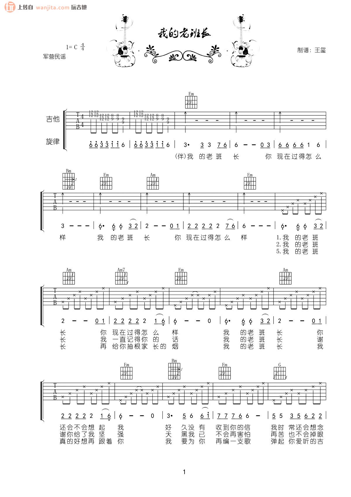 《《我的老班长吉他谱》(C调)》内容来自于互联网,不能保证内容的准确性与完整性,仅供学习交流欣赏,请勿用于其它用途,内容版权归原作者及来源网站所有,如有侵犯到您的权益请来信告知,我们将及时删除。