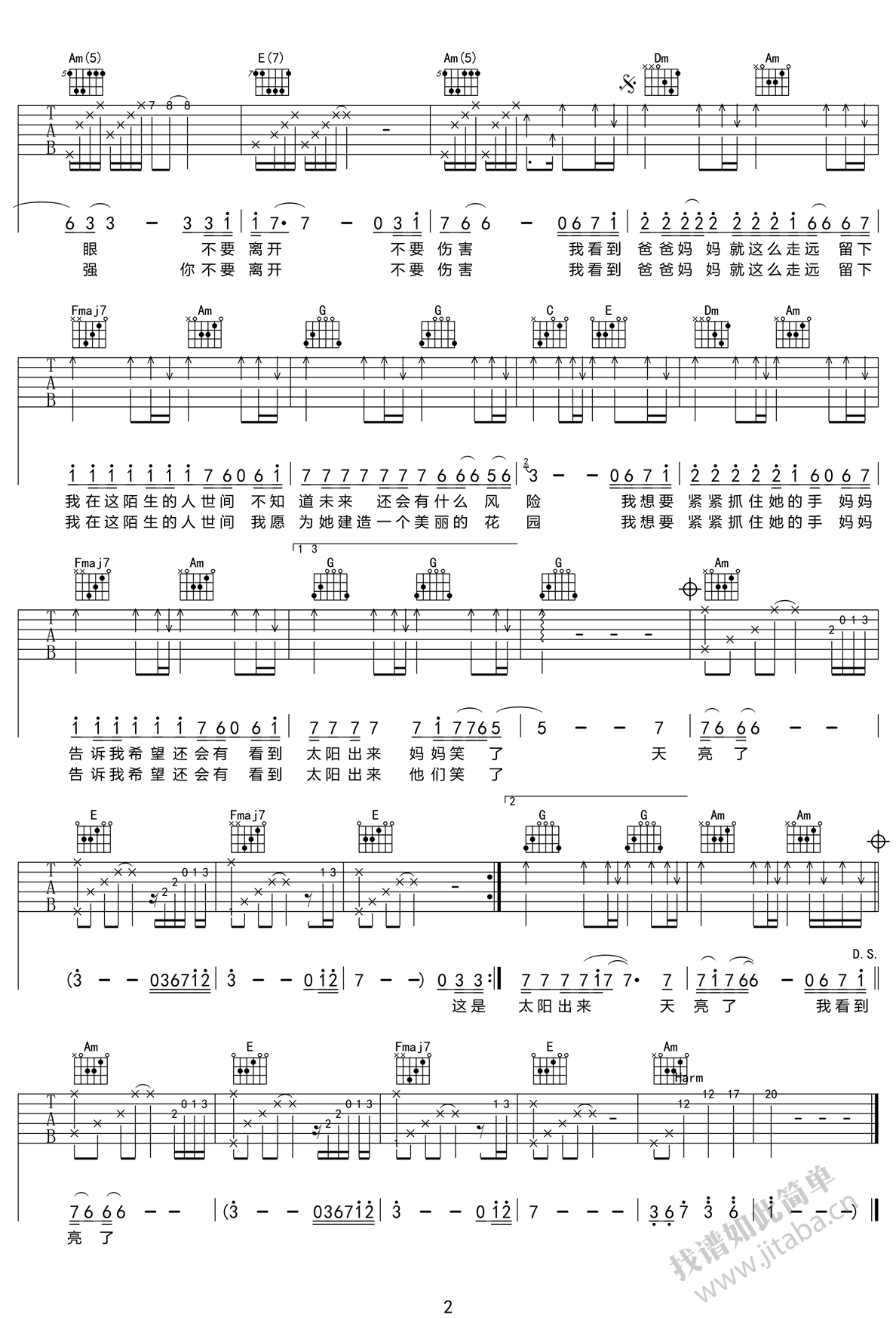 本文标题 《韩红《天亮了吉他谱》(C调)》,网址:https://www.21qupu.com/guitar/5078.html