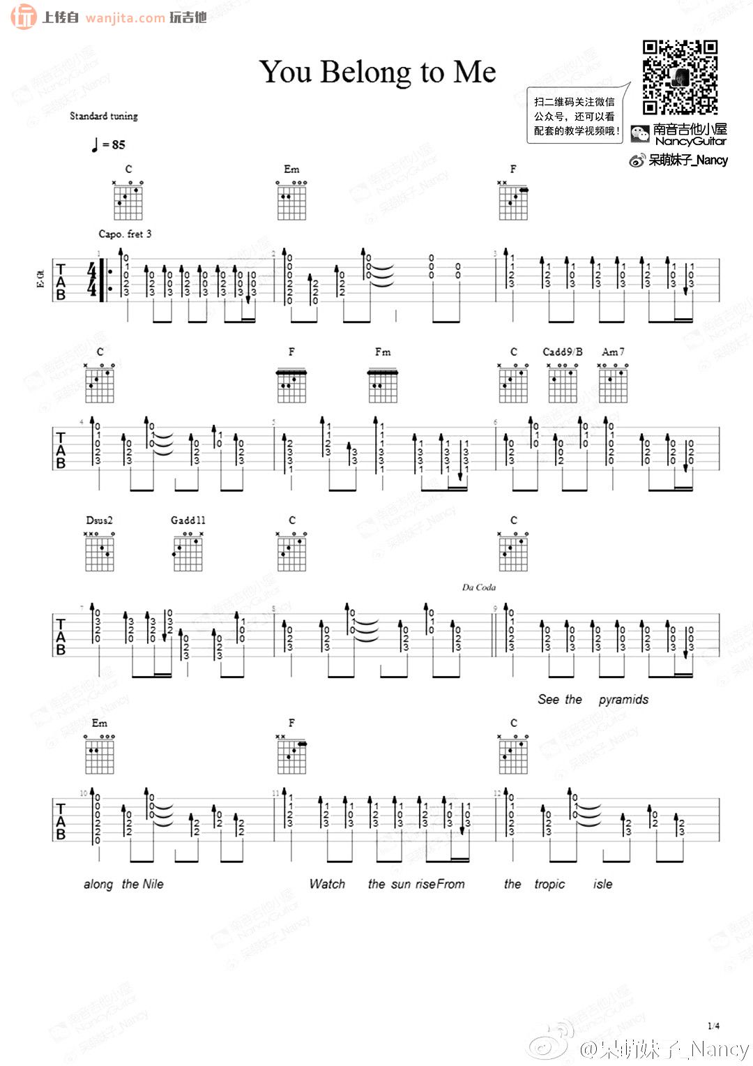 《ong《You Bel To Me吉他谱》(C调)》内容来自于互联网,不能保证内容的准确性与完整性,仅供学习交流欣赏,请勿用于其它用途,内容版权归原作者及来源网站所有,如有侵犯到您的权益请来信告知,我们将及时删除。