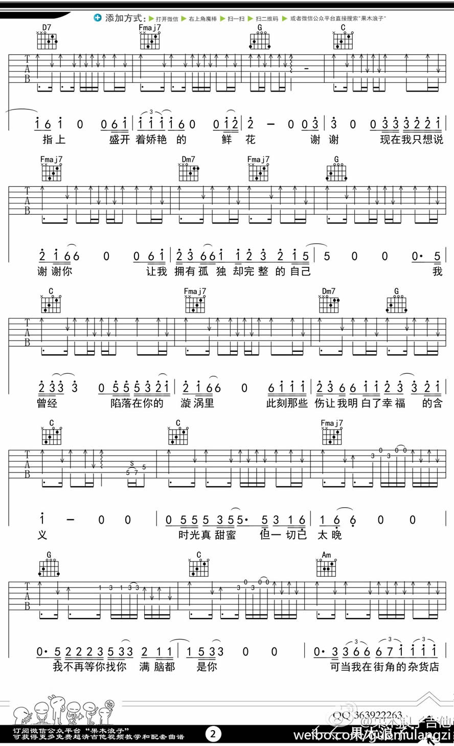 您现在的位置是:首页 > 吉他谱 > 汪峰《谢谢吉他谱》 汪峰《谢谢吉他谱》 日期:2023-12-13 22:25:01 汪峰 汪峰感谢吉他谱以C调指法呈现,《谢谢》是他的原创新歌。这份高清谱单共包括5张图片。感慨万分的编者特别感谢果木浪子老师的分享与编配。多年来,我一直是汪峰的忠实粉丝,从鲍家街时期到现在,他的音乐不只是歌曲,更是人生经历的抒发。每一首歌都是一个动人的故事,就如我在制