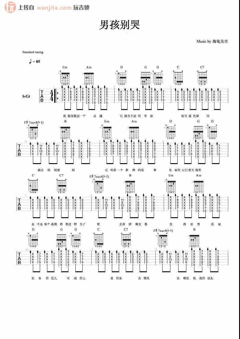 这是一首名为《男孩别哭》的摇滚歌曲,以C调六线谱呈现,无需变调夹。这首充满个性的歌曲难度较高,对初学者较为挑战,需注意掌握准确的节奏感和左手和弦的变换。然而,这首歌曲不仅仅是音符的堆砌,更是一曲抚慰伤心灵魂的旋律。希望更多的人能够聆听这首歌,感受其中蕴含的情感