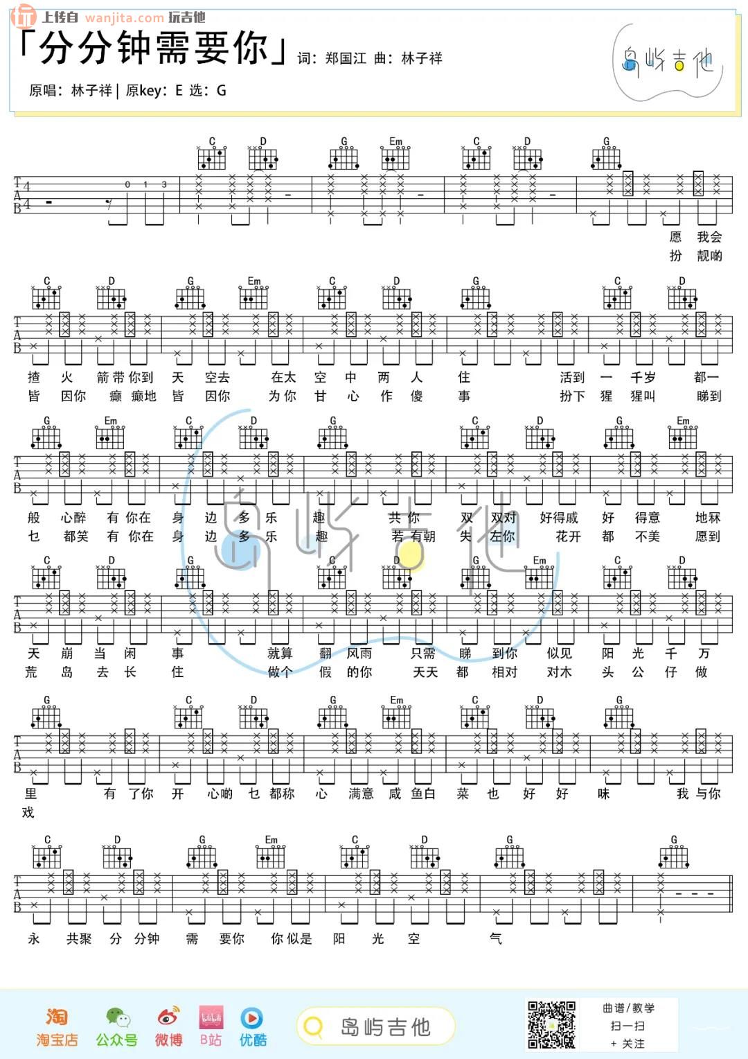 《林子祥《分分钟需要你吉他谱》(G调)》内容来自于互联网,不能保证内容的准确性与完整性,仅供学习交流欣赏,请勿用于其它用途,内容版权归原作者及来源网站所有,如有侵犯到您的权益请来信告知,我们将及时删除。